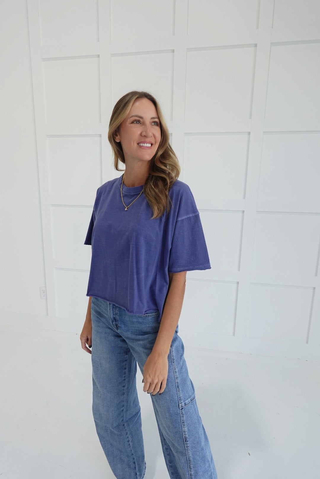 Experience comfort and style with the Boxy Acid Wash Tee. Crafted with pigment dye and enzyme washing, this oversized crop boxy tee offers a unique faded look and a soft, broken-in feel. Its relaxed fit makes it perfect for casual wear, providing ease of movement and a modern edge to your wardrobe.