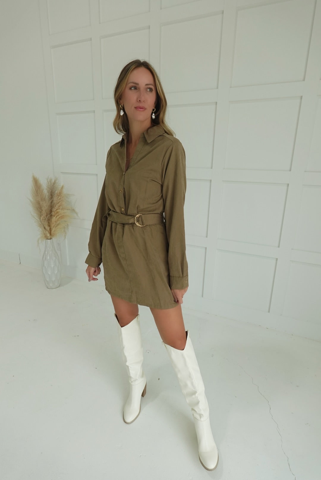 The Brazos Mini Dress combines effortless style with practical details. Featuring a belted waist for a flattering silhouette and button accents that add a classic touch, this shirt dress is perfect for everyday wear or casual outings. Its comfortable fit and versatile design make it a go-to choice to feel confident and polished all day long.