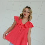 Step into summer with our Breakaway Top in Coral! This playful linen A-line top is the perfect addition to your warm weather wardrobe. With its flattering silhouette and breathable fabric, you'll be comfortable and stylish all season long.