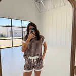 Stripe Contrast Trim Top & Shorts Set Bold stripes meet sharp tailoring in this daring two-piece set that commands attention. The cropped top features striking contrast trim that frames the silhouette, while high-waisted shorts deliver a confident, editorial edge. Perfect for those who refuse to blend in—wear it as a statement ensemble or mix the pieces for versatile styling. Modern, fearless, unforgettable.