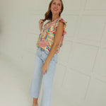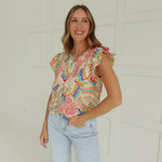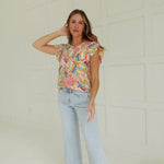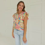 Shake up your wardrobe with the Brighter Days Top! This playful top features an eye-catching abstract print and flutter sleeves that add a touch of whimsy. Brighten up any day with this quirky and stylish addition to your closet.