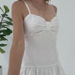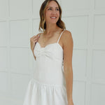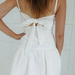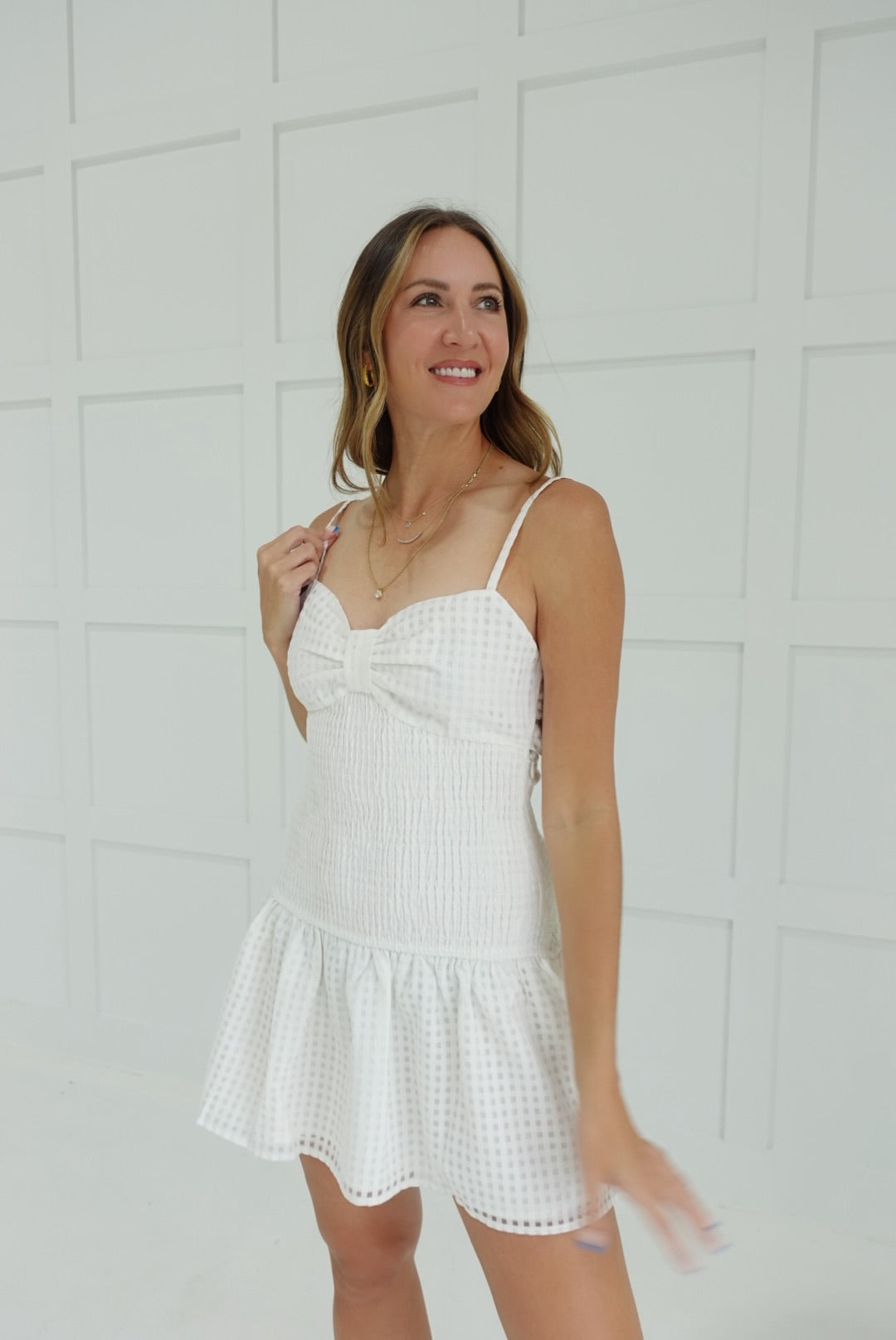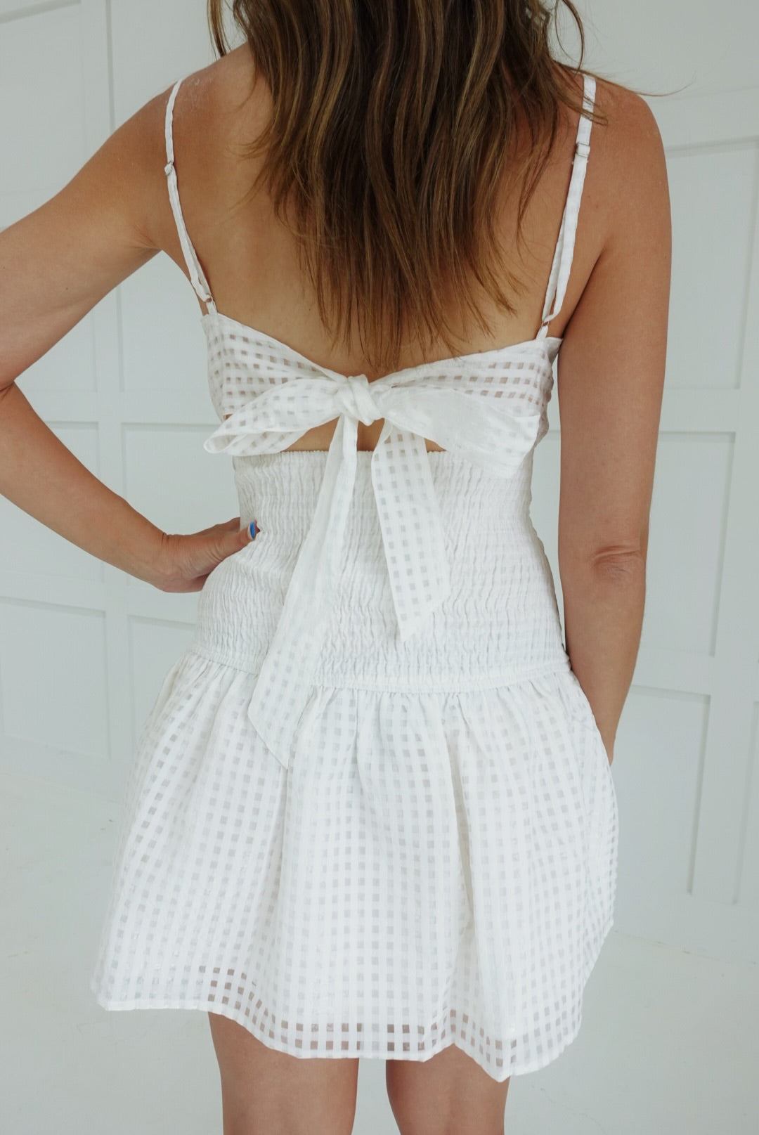 Step into style with the Britton Mini Dress. This drop waist dress features playful back ties and a smocked design for a flattering fit. The gingham print adds a touch of whimsy to this must-have dress.
