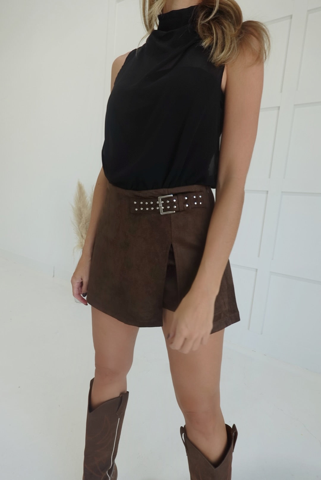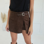 This suede mini skirt with a buckle detail offers a stylish, polished look perfect for versatile wear. The soft suede material ensures comfortable wear while the buckle adds a refined touch, enhancing your outfit effortlessly. Ideal for pairing with both casual and dressier tops, it’s a wardrobe staple that supports confident, everyday style.