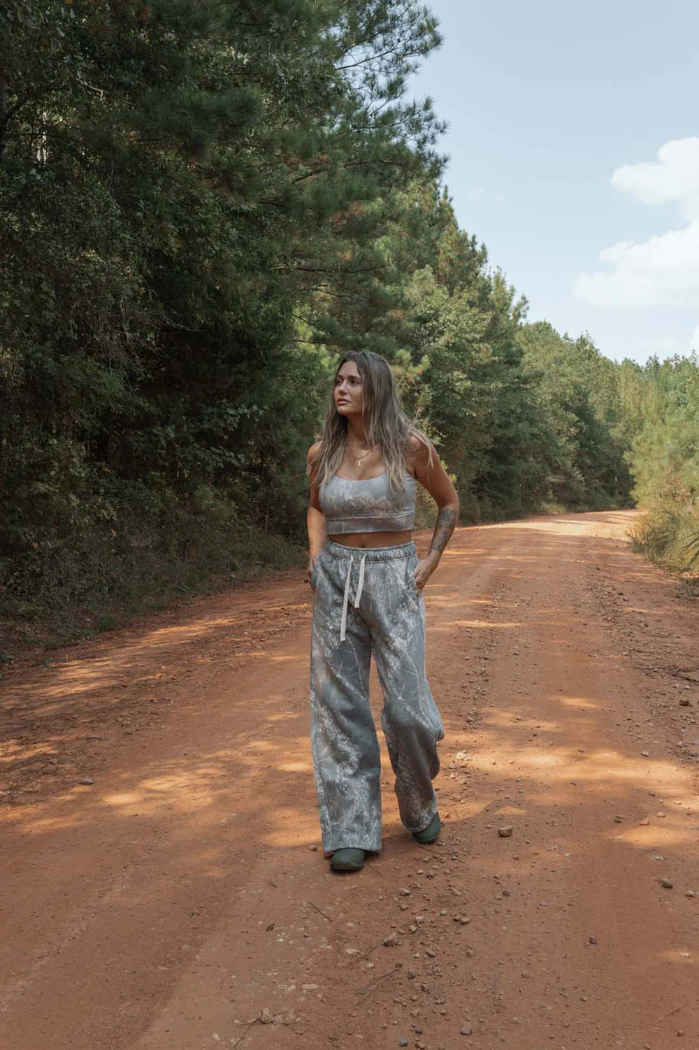 Our best-selling Butter Wide Leg is a dream come true and now available in Mossy Oak's Break Up® print!We go above and beyond with a proprietary enzyme wash to help with pilling and give you the softest sweatpants you'll ever own. These super soft, high-waisted wide-leg pants are perfect paired with a Butter Hoodie or a Ribbed Traveler Bra! You can dress our wide legs up or down with sneakers or heels!This collection is true to size and features contrast TRIBE embroidery on the thigh. Upgrade your wardrobe with the softest sweatpants made right here in the USA