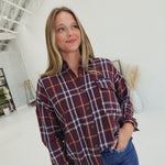 The By the Campfire Top is a cozy long sleeve button-down shirt featuring a classic plaid pattern and a convenient pocket detail. Perfect for layering or wearing on its own, this shirt offers both comfort and style for casual days or outdoor adventures. Its relaxed fit ensures ease of movement, making it a versatile addition to your wardrobe.