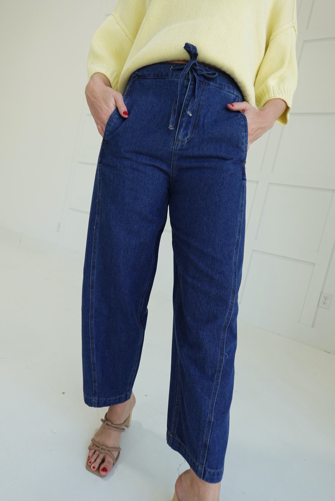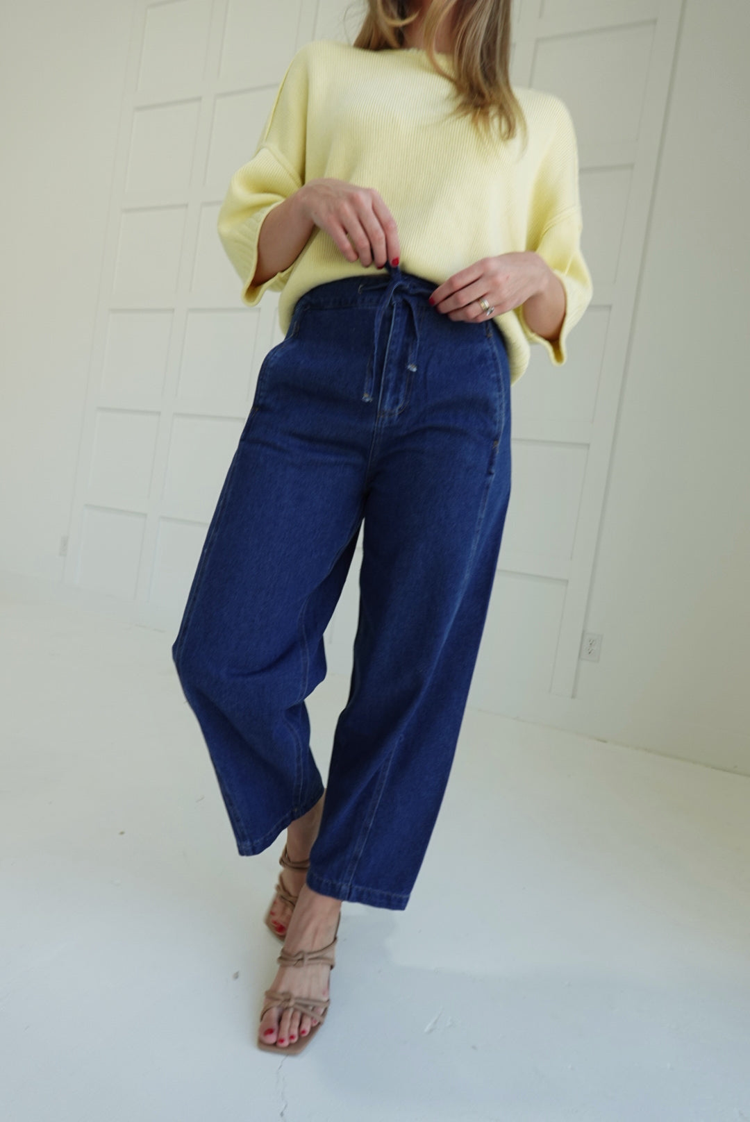 Cambrie Cropped Pants command attention with their bold silhouette—high-waisted cut elongates the leg while the front tie detail adds an unexpected twist of attitude. Wide legs create movement and drama, cropped just right to showcase statement footwear. Perfect for those who refuse to blend in and demand their style make a statement.