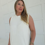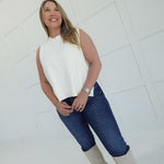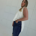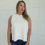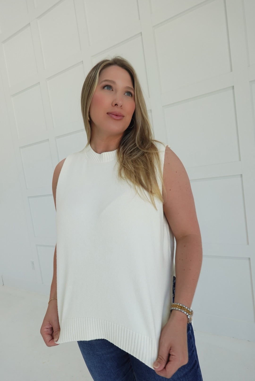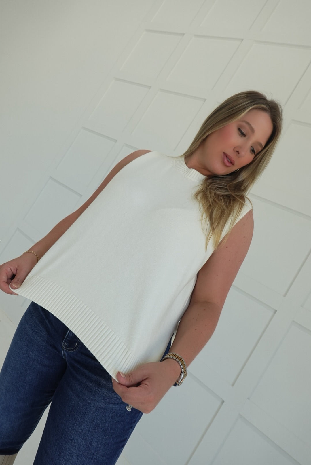 - Sleeveless, hi-low sweater top