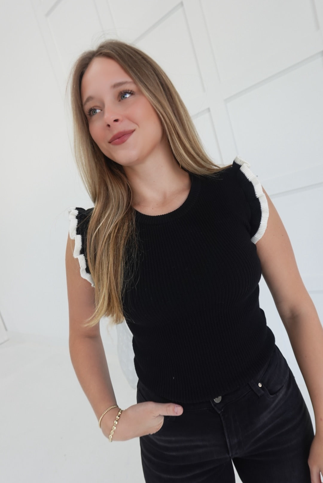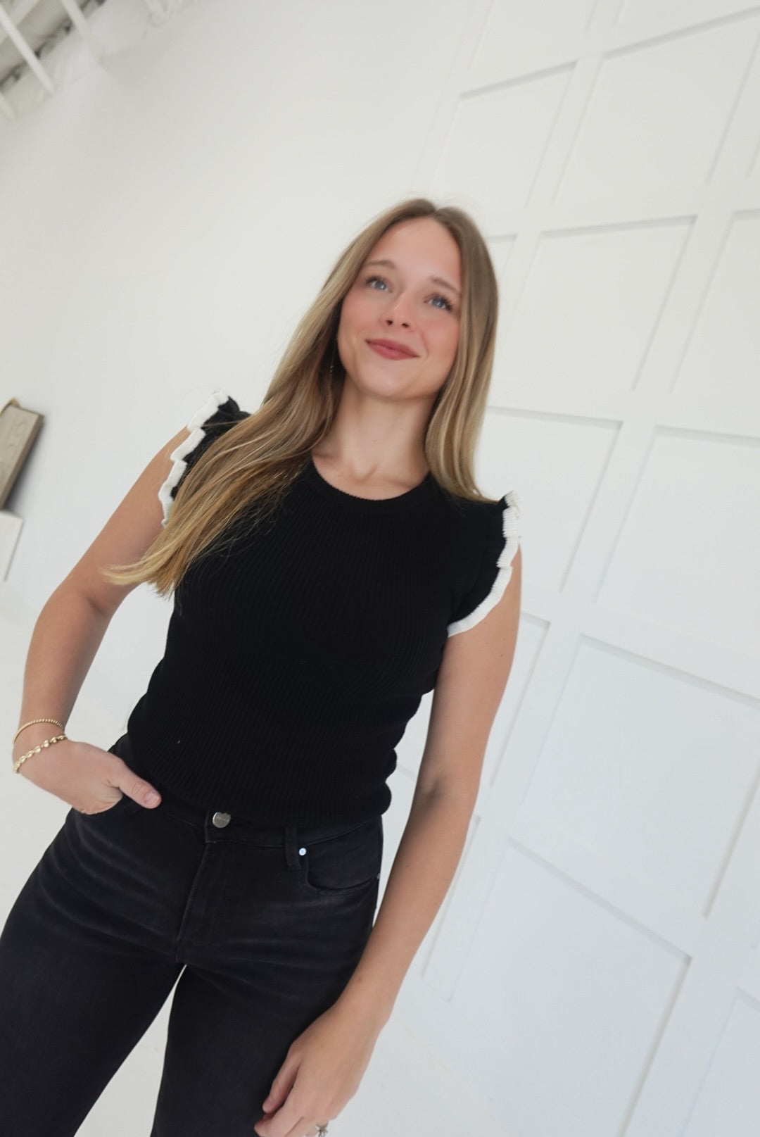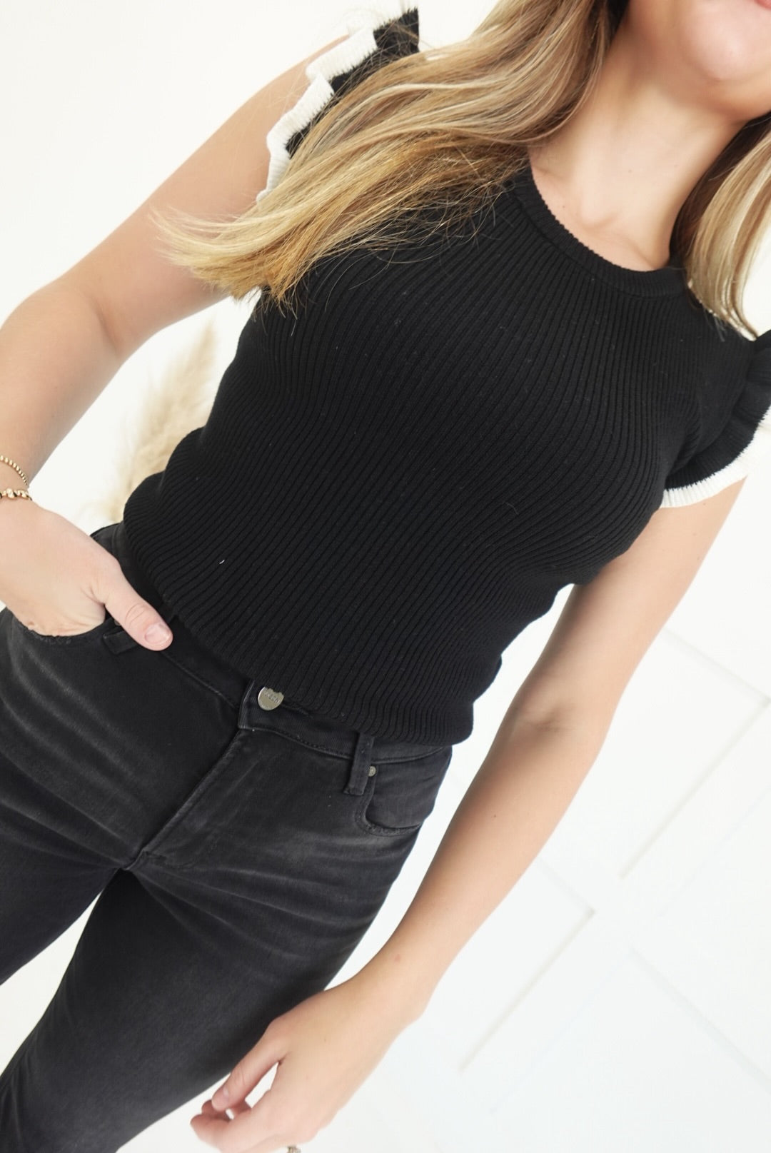 Add some flair to your wardrobe with the Cara Sweater Knit Top! Featuring contrast ruffle sleeves, this top will make a statement wherever you go. Stay stylish and cozy with this must-have piece!