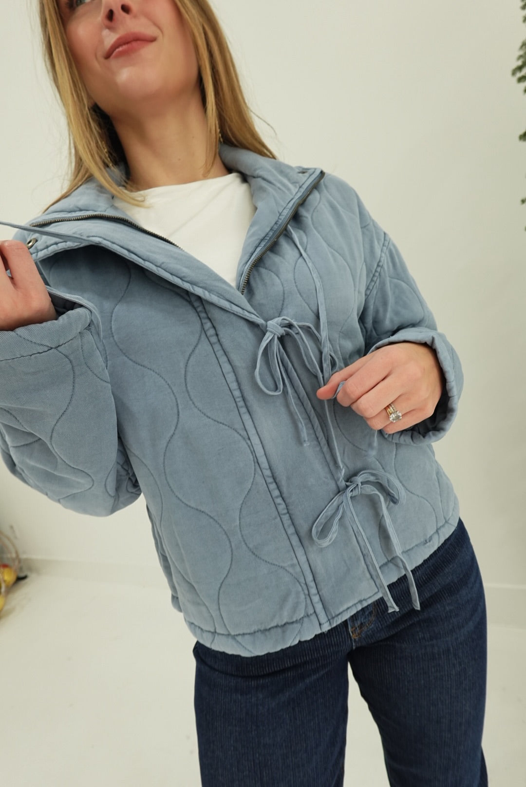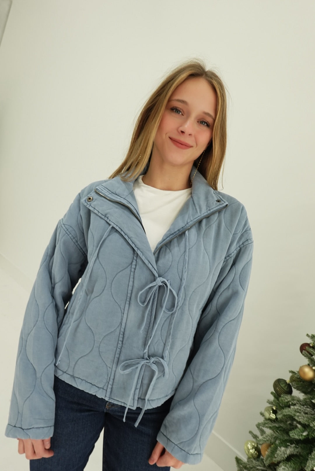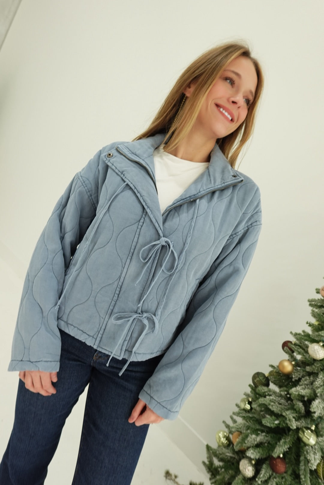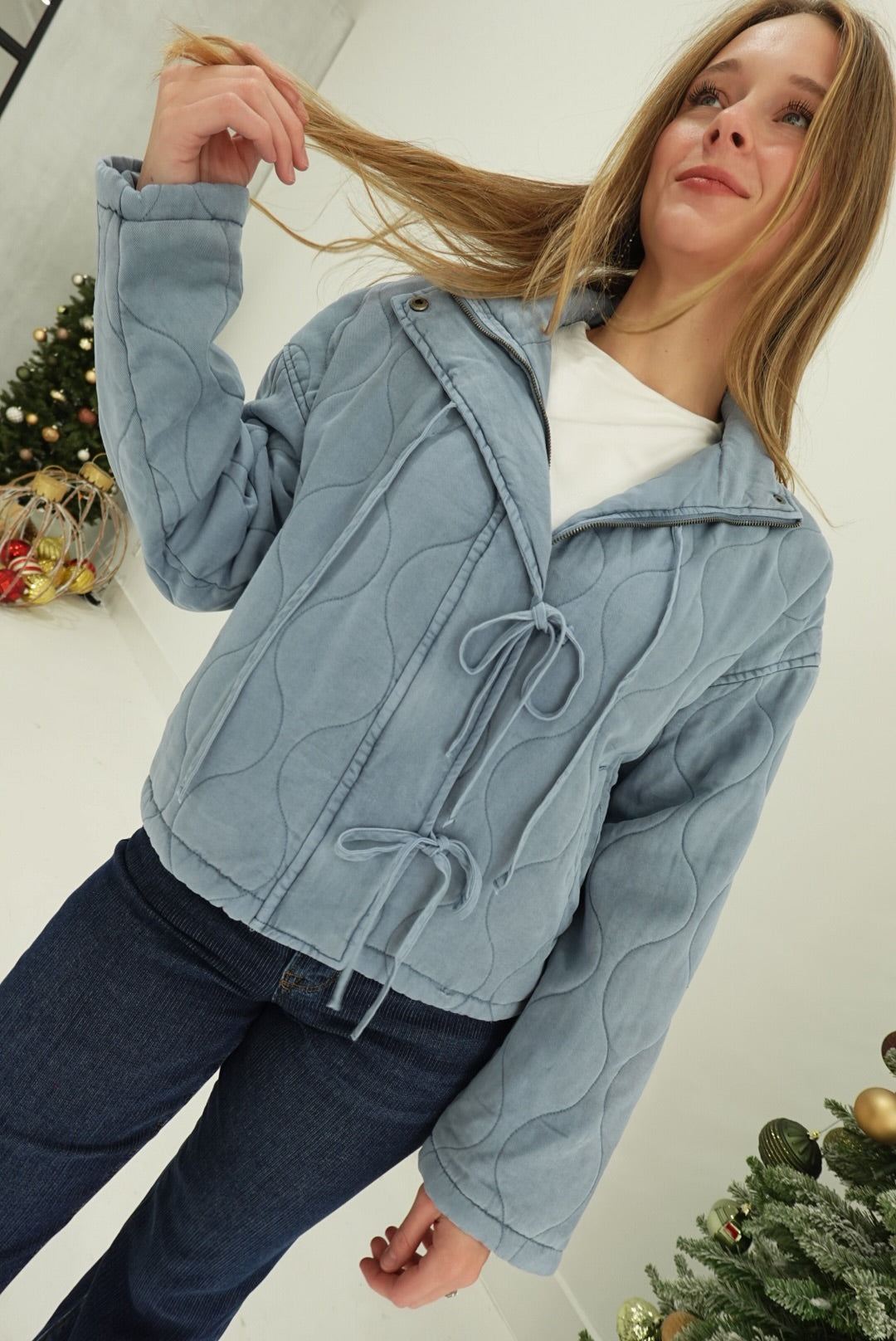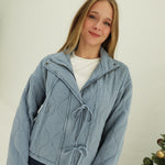 Stay cozy and confident in the Carsyn Quilted Jacket. Featuring a washed quilted design and a front tie closure, it offers both style and a comfortable, adjustable fit. Perfect for layering on chilly days, this jacket provides warmth without bulk, making it an easy go-to for your everyday wardrobe.