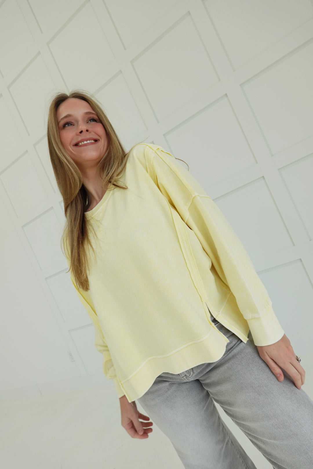 - Exposed Seam, Split Hem Pullover