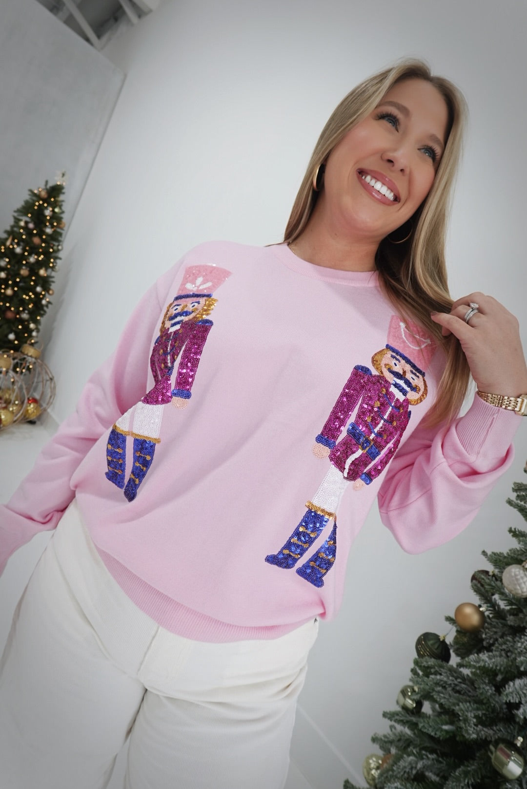 - Loose Fit Nutcracker Sweater With Embroidered Sequins
