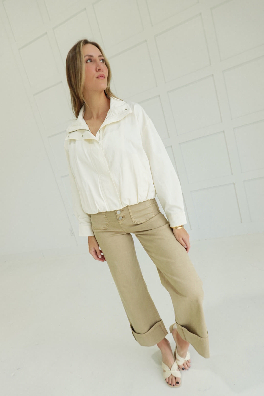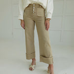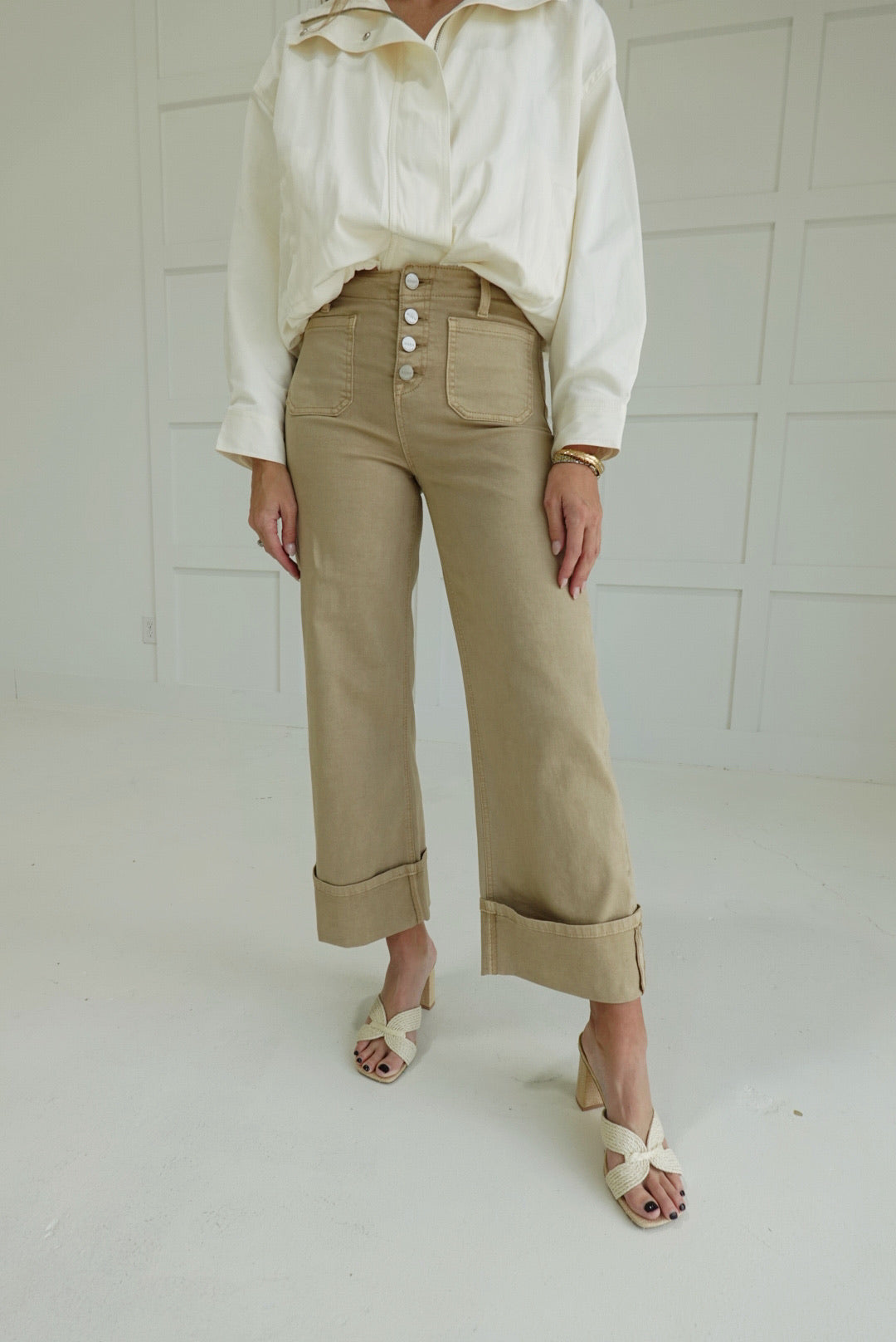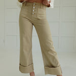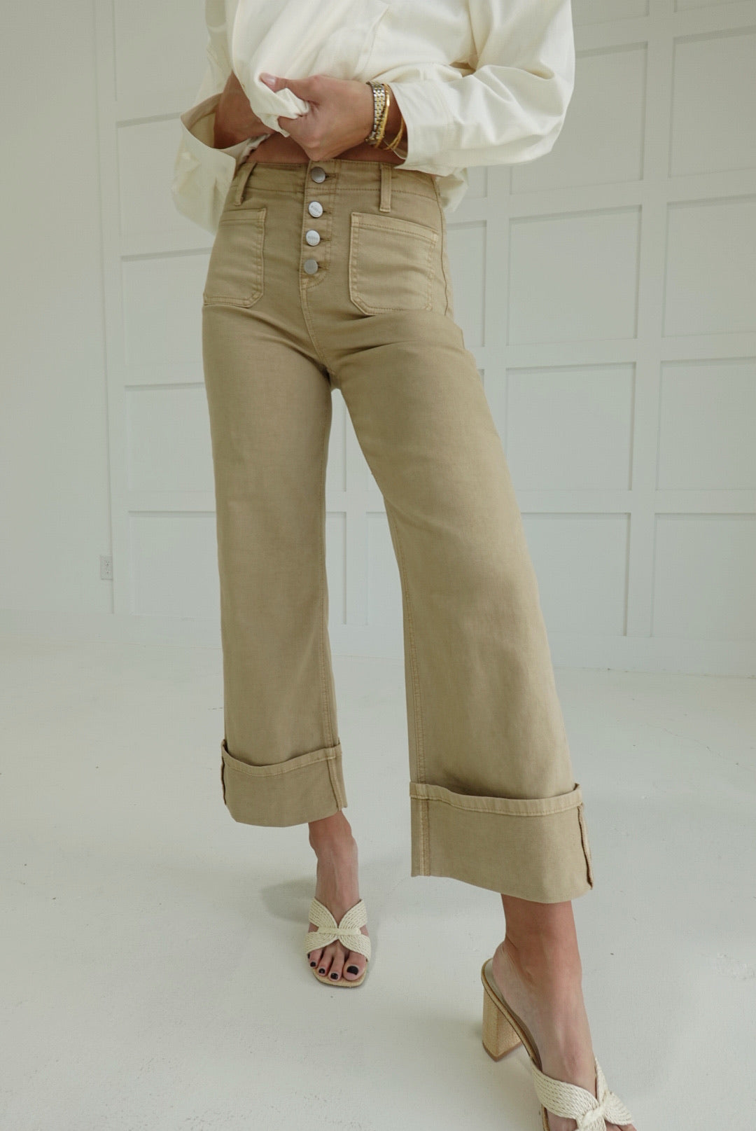 - High Rise, Patch Pocket, Wide Leg, Cuffed Jeans