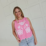 Get ready to turn heads with the Charlene Embroidered Top! This sleeveless stunner is delicately accented with intricate embroidery, adding a touch of elegance to any outfit. Say goodbye to boring tops and hello to this playful and chic must-have.