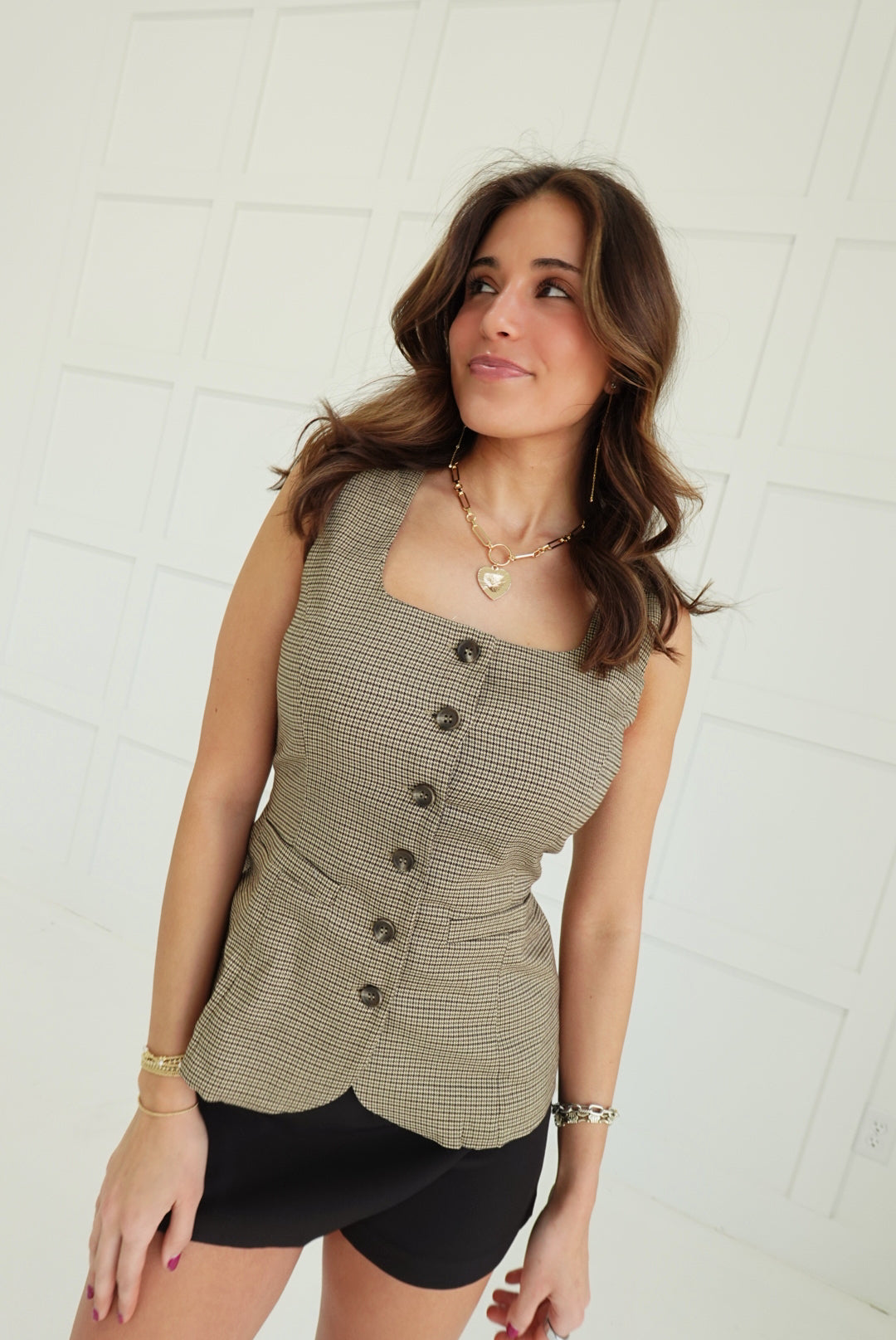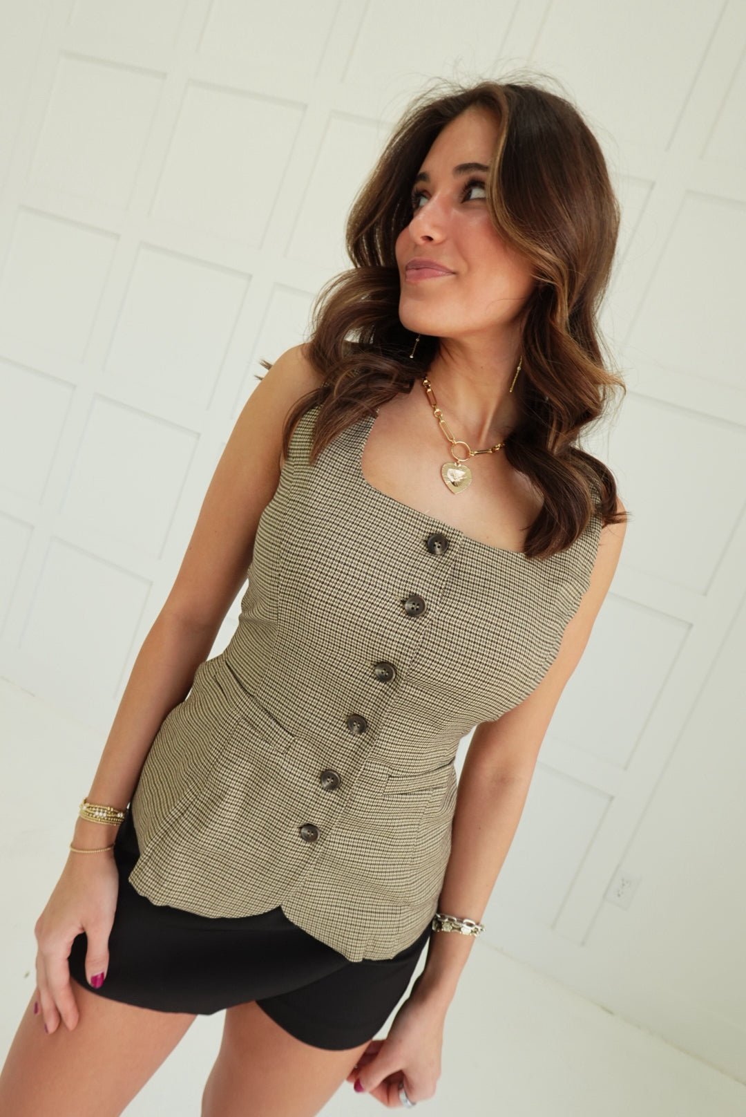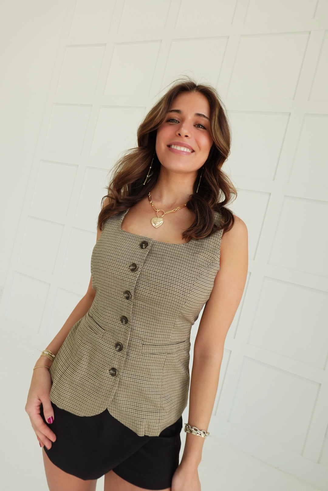 - Plaid Button Down Sleeveless Vest Top