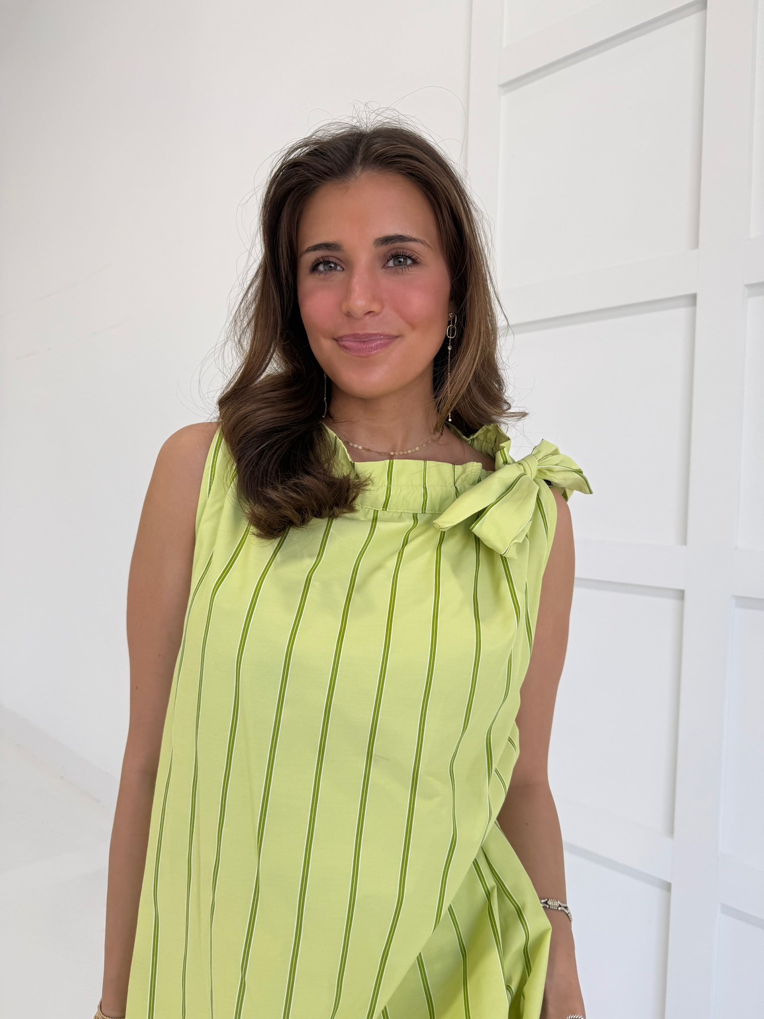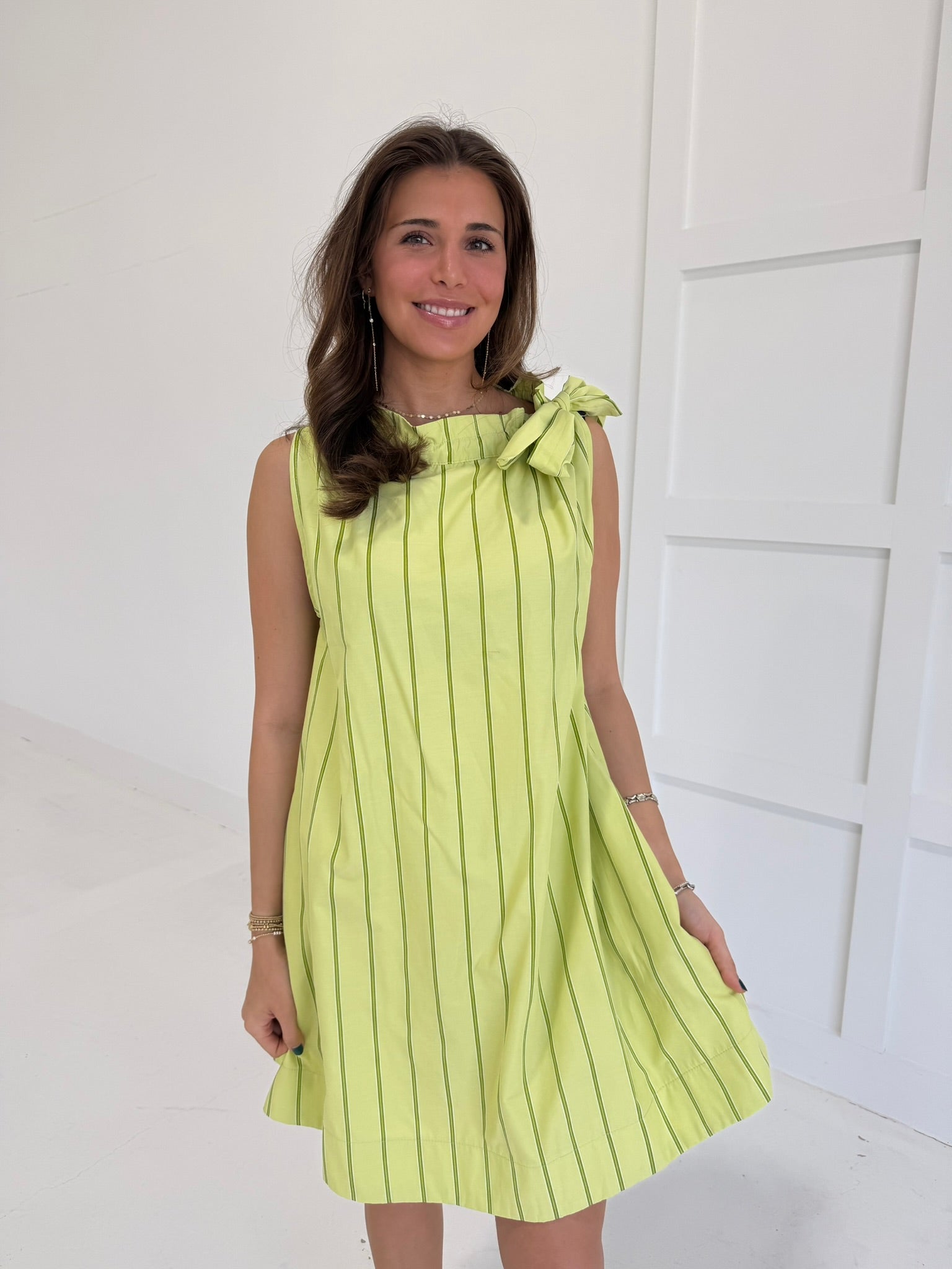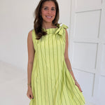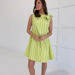Slip into effortless elegance with this striking sleeveless mini dress. The classic round neckline and tie detail at the waist create a flattering silhouette that transitions seamlessly from day to night. Cut in a bold lime that commands attention, this piece pairs perfectly with heels for a night out or sneakers for weekend confidence. A wardrobe essential that proves timeless style never goes out of fashion.