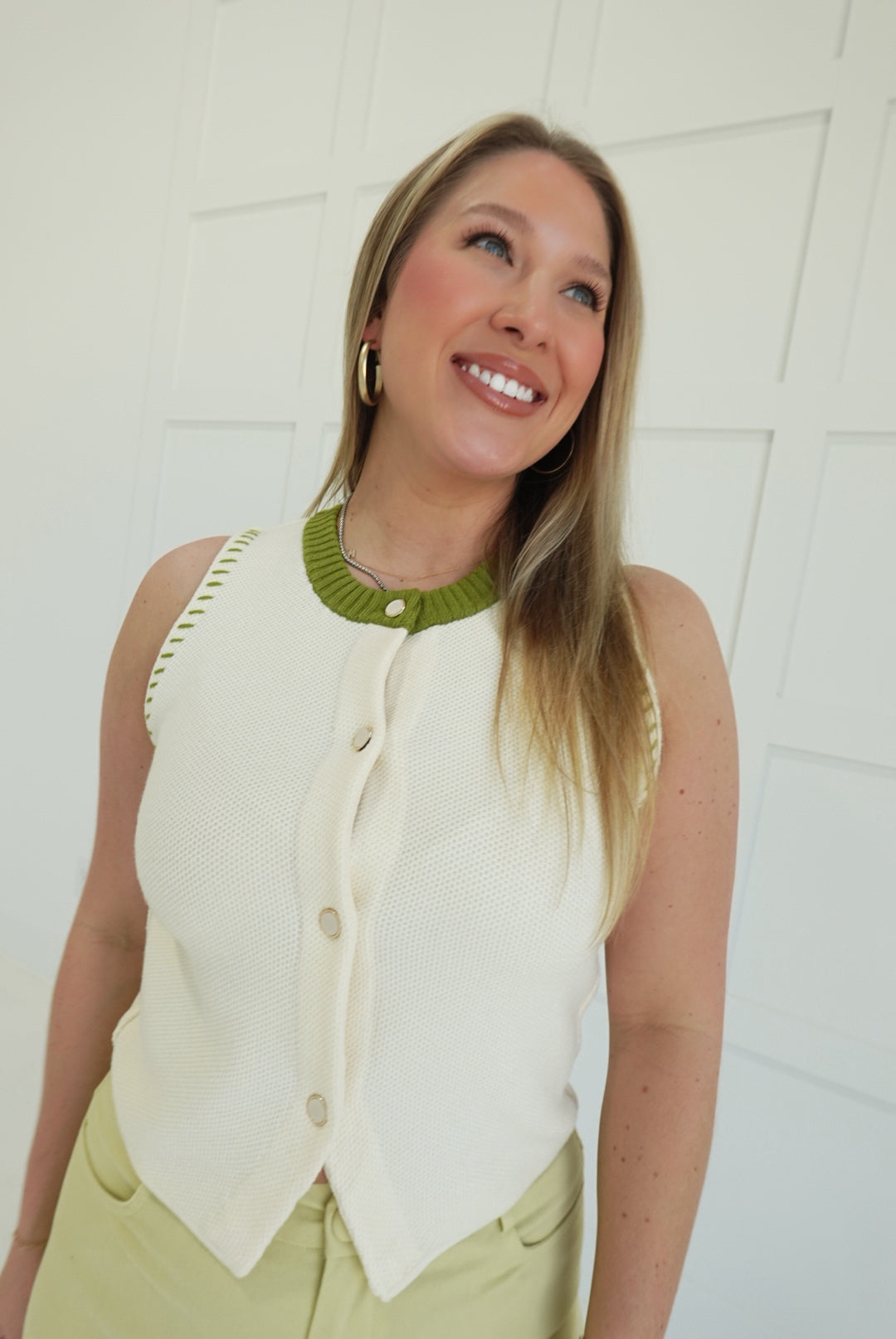 Stripped of sleeves, loaded with attitude. This button-up sweater cardi cuts through the ordinary with clean lines and fearless versatility. Layer it over anything—tees, tanks, dresses—and own the moment. The structured knit holds its shape while the open front gives you total control over your look. Hues that command attention without apology. For those who dress to make a statement, not follow one.