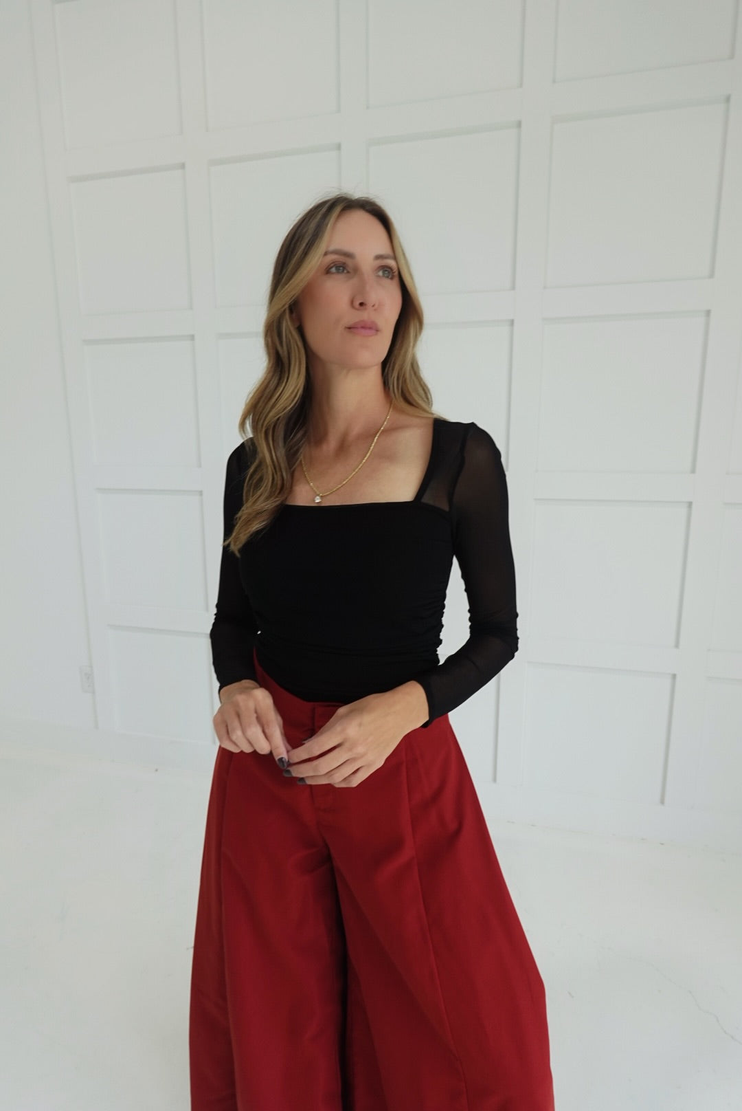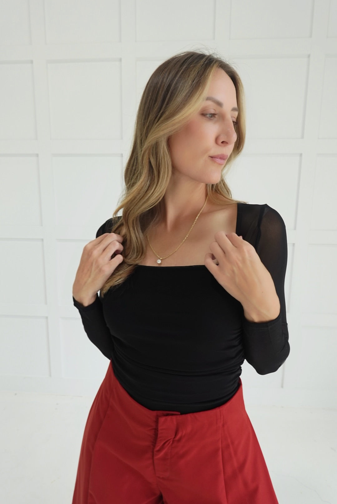- Ruched Waist Square Neckline Top