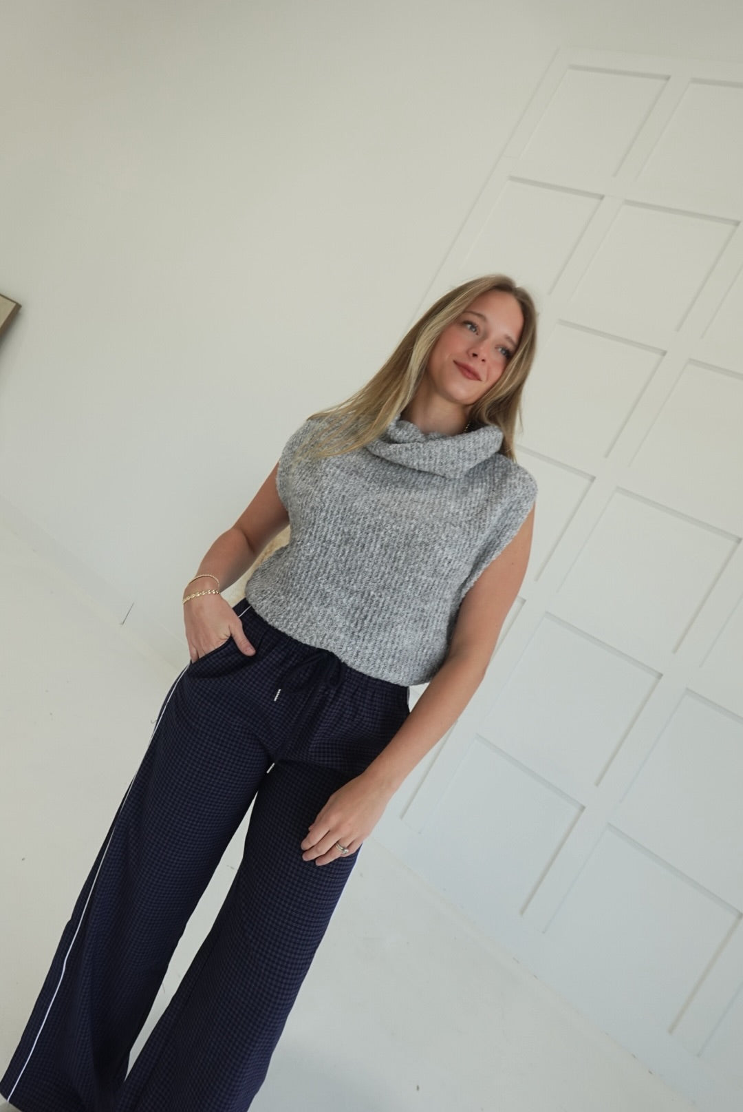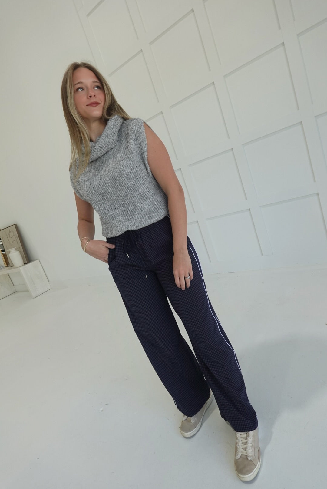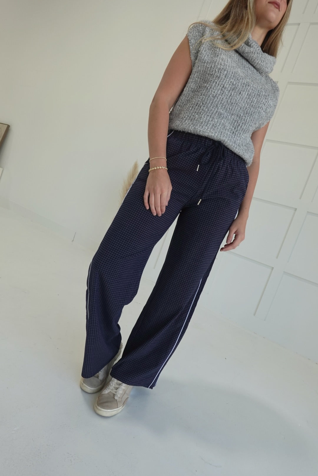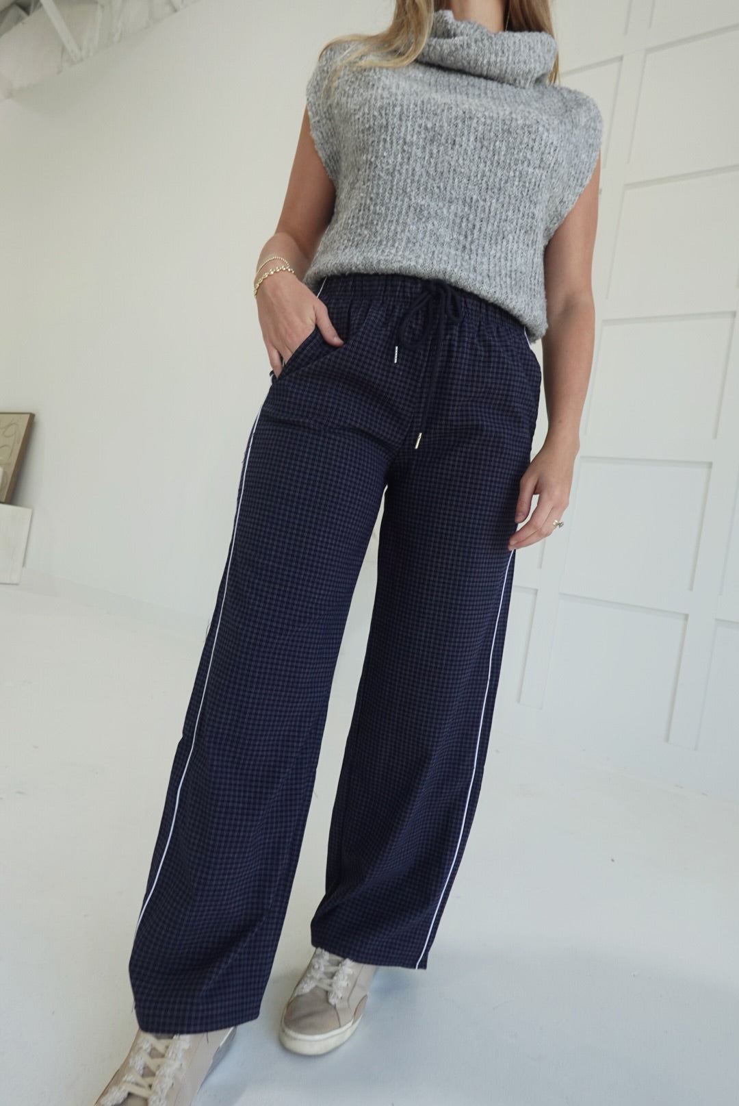 - Long Checkered Pants With Elastic Waistband