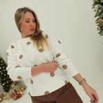 Celebrate every moment with the Cheer For The Year Sweater, featuring elegant metallic gold polka dot details that add a festive touch to your look. This cozy sweater combines comfort and style, perfect for showing your cheer while staying warm. Its subtle shimmer makes it ideal for gatherings and everyday wear, helping you feel confident and spirited throughout the season.