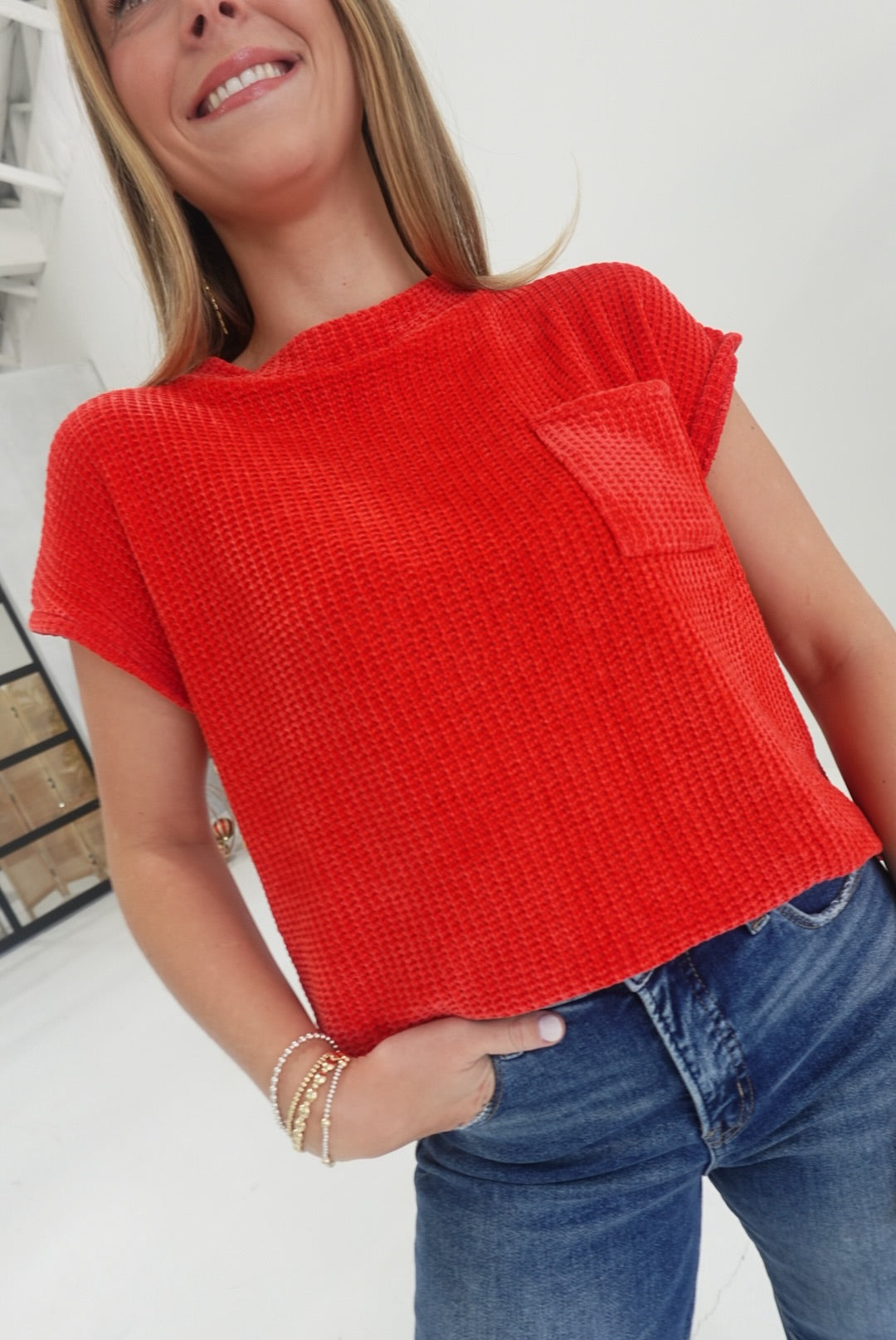 Chenille Waffle Top - Ruby