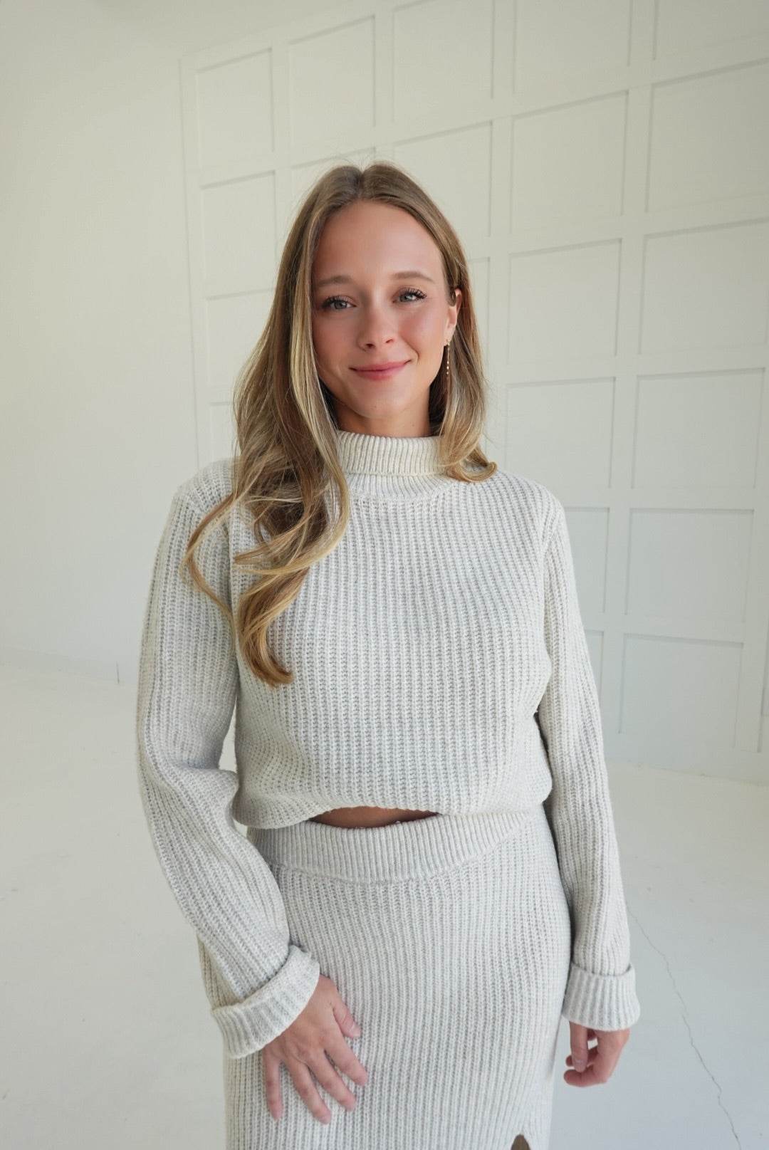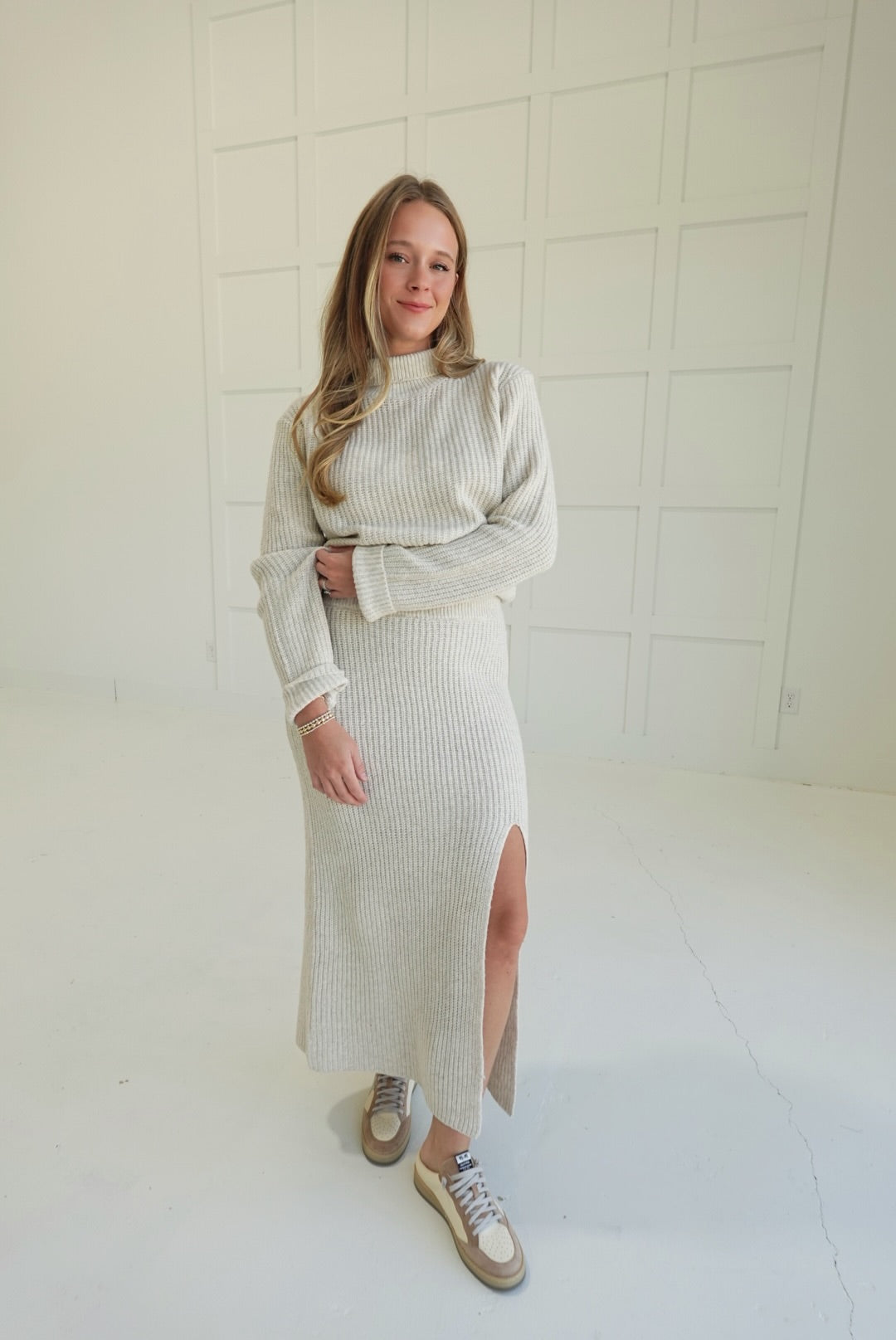 Embrace cozy elegance with the Cherish The Season Sweater Set. This ensemble features a warm turtleneck sweater paired with a midi skirt that includes a stylish side slit, offering both comfort and a flattering silhouette. Perfect for layering or wearing on its own, this set supports your need for effortless style and seasonal warmth.