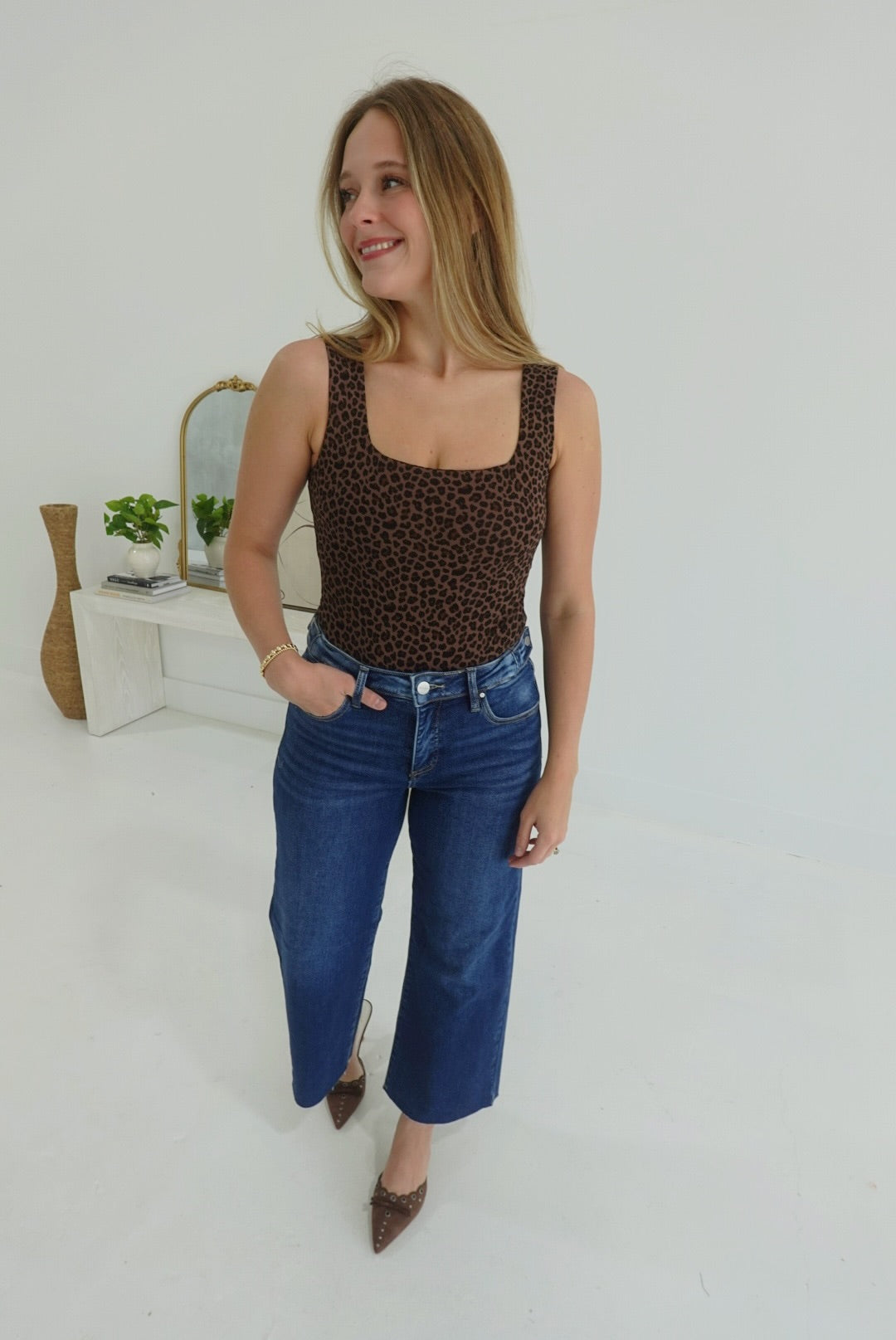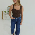 The Child's Play Bodysuit in Brown features a stylish square neck and sleeveless design with a subtle leopard print, perfect for layering or wearing on its own. Its soft, comfortable fabric offers ease of movement, making it ideal for active days. Designed to combine trendy style with practical comfort, this bodysuit supports your child’s playful spirit all day long.