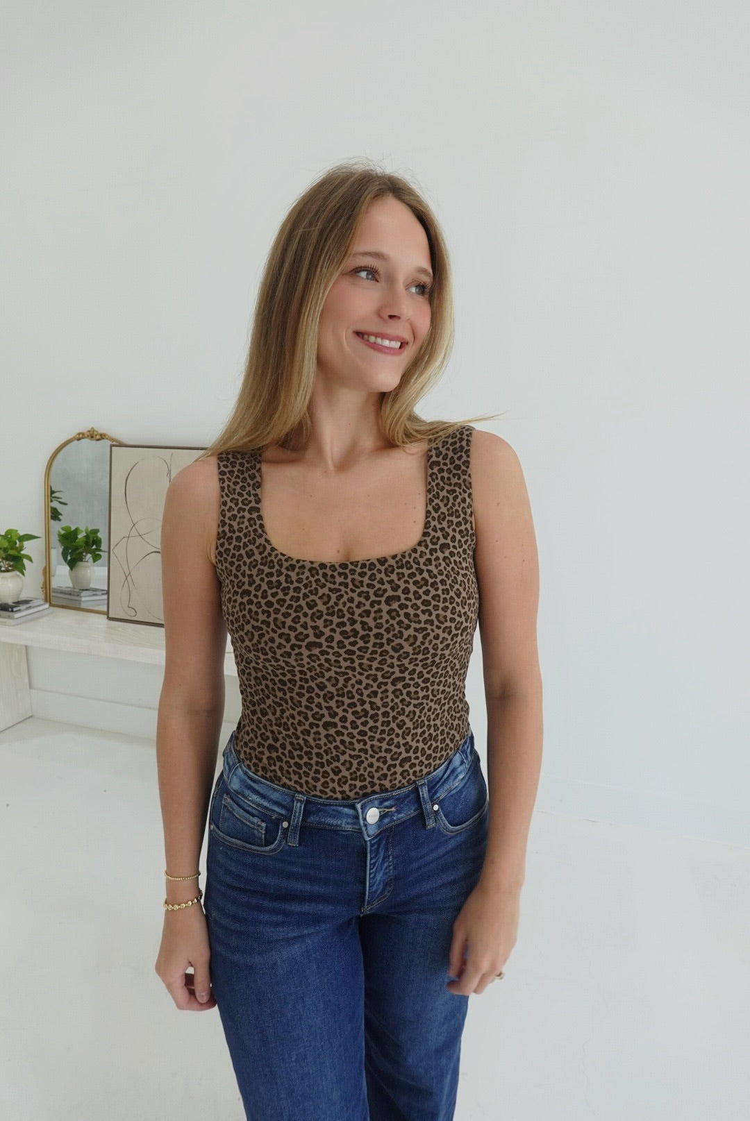 The Child's Play Bodysuit in Taupe features a stylish square neck and sleeveless design with a subtle leopard print, perfect for layering or wearing on its own. Its soft, comfortable fabric offers ease of movement, making it ideal for active days. Designed to combine trendy style with practical comfort, this bodysuit supports your child’s playful spirit all day long.