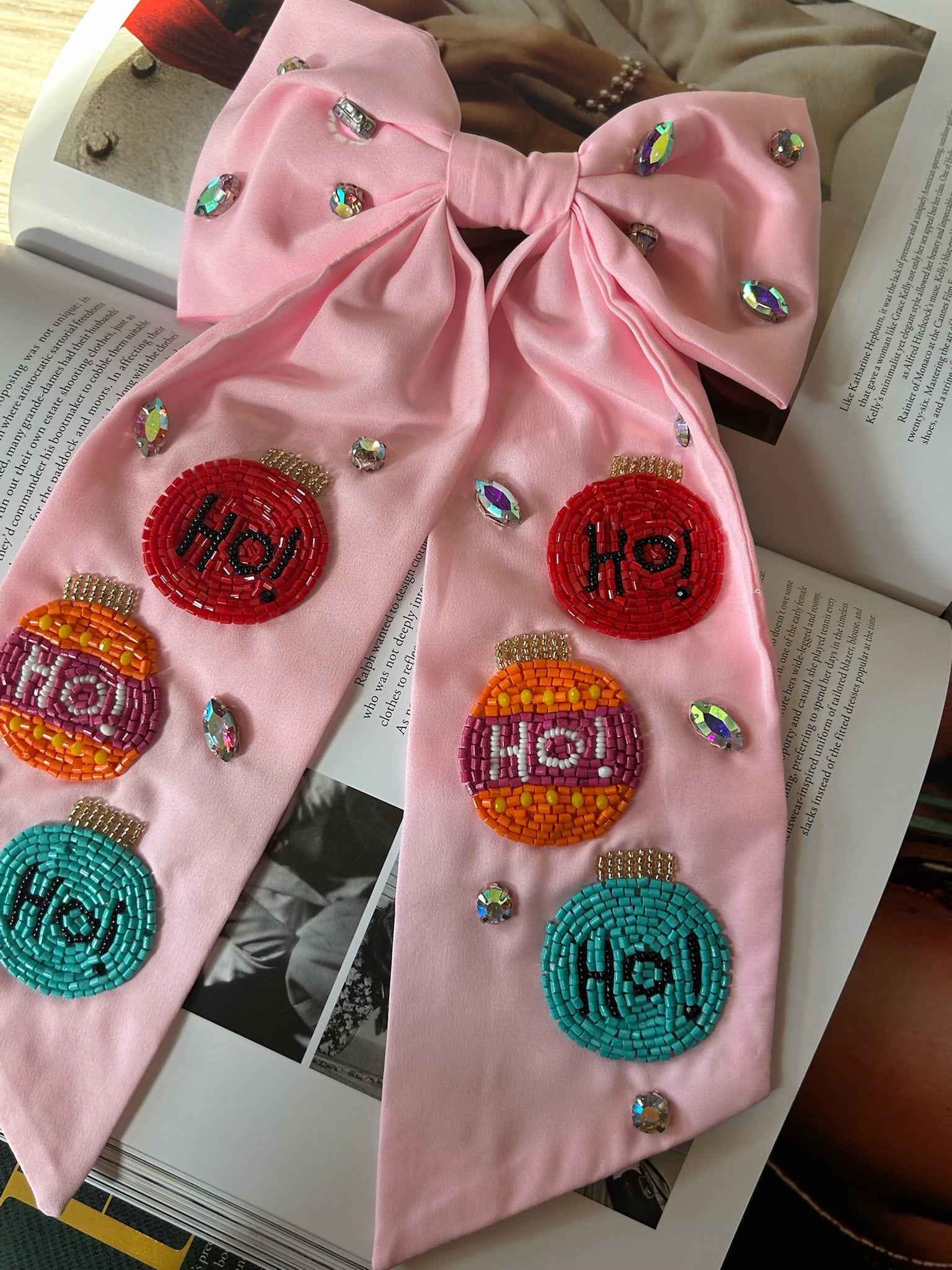 Spread holiday cheer with this festive Christmas hair bow barrette. Featuring a cheerful "Ho Ho Ho" design, this charming clip adds instant seasonal spirit to any hairstyle. Perfect for holiday parties, family gatherings, or everyday festive fun, it's an easy way to celebrate the most wonderful time of year. Secure, stylish, and full of Christmas joy—a delightful accessory for anyone who loves the holidays.