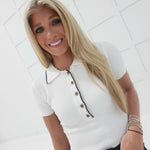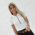 The Claiborne Polo Top features a stylish contrast trim and a half-button design, crafted from soft knit fabric for comfortable wear. Its classic polo silhouette offers a polished look while the breathable material ensures all-day comfort. Perfect for casual or smart-casual occasions, this top combines ease and style effortlessly.