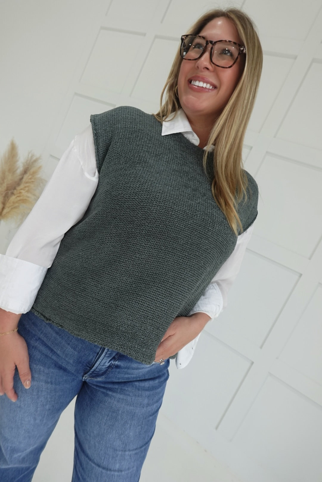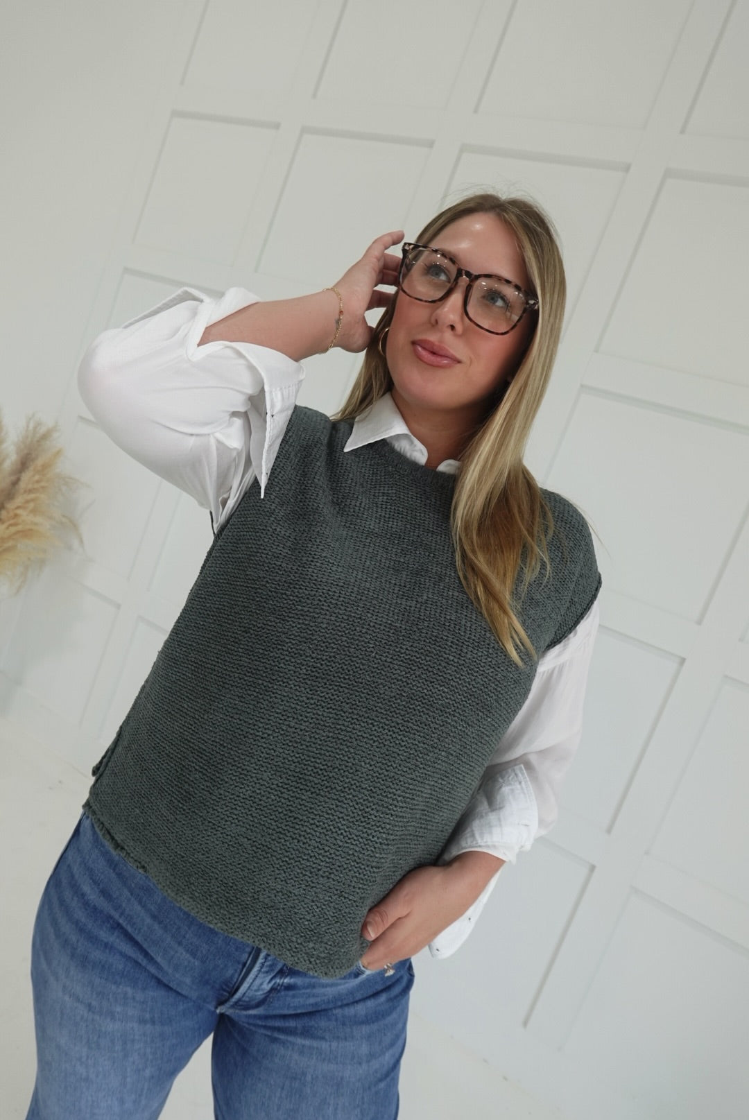The Claiborne Sweater Top offers a cozy oversized fit with a classic crew neck design. Featuring side slits for added comfort and ease of movement, this vest layers effortlessly over your favorite tops. Perfect for staying warm while maintaining a relaxed, stylish look.