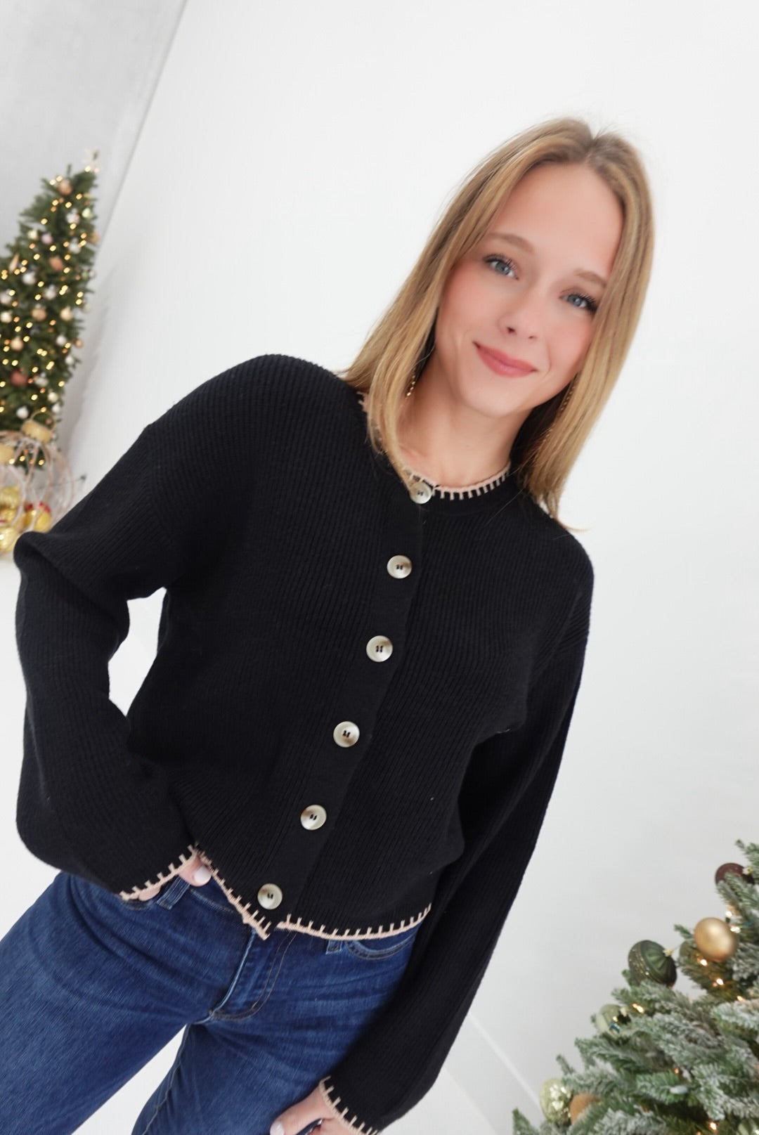 Stay comfortable and stylish with the Clancy Contrast Cardi. Featuring a button-down front and a soft knit fabric, this cardigan is designed for easy layering. The contrast stitching trim adds a subtle yet distinctive detail that enhances its classic silhouette. Perfect for cool days, it offers both warmth and a polished look to complement your wardrobe effortlessly.