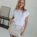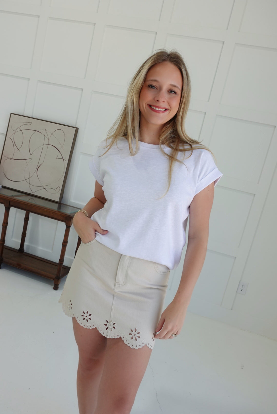 Introducing the Clarity A-Line Mini Skirt with a beautiful embroidered hem! This skirt is perfect for the spring season, adding a touch of elegance and femininity to your wardrobe. The A-line cut is flattering and comfortable, making it a must-have for any fashion-forward individual. Experience the clarity of style with this must-have piece!