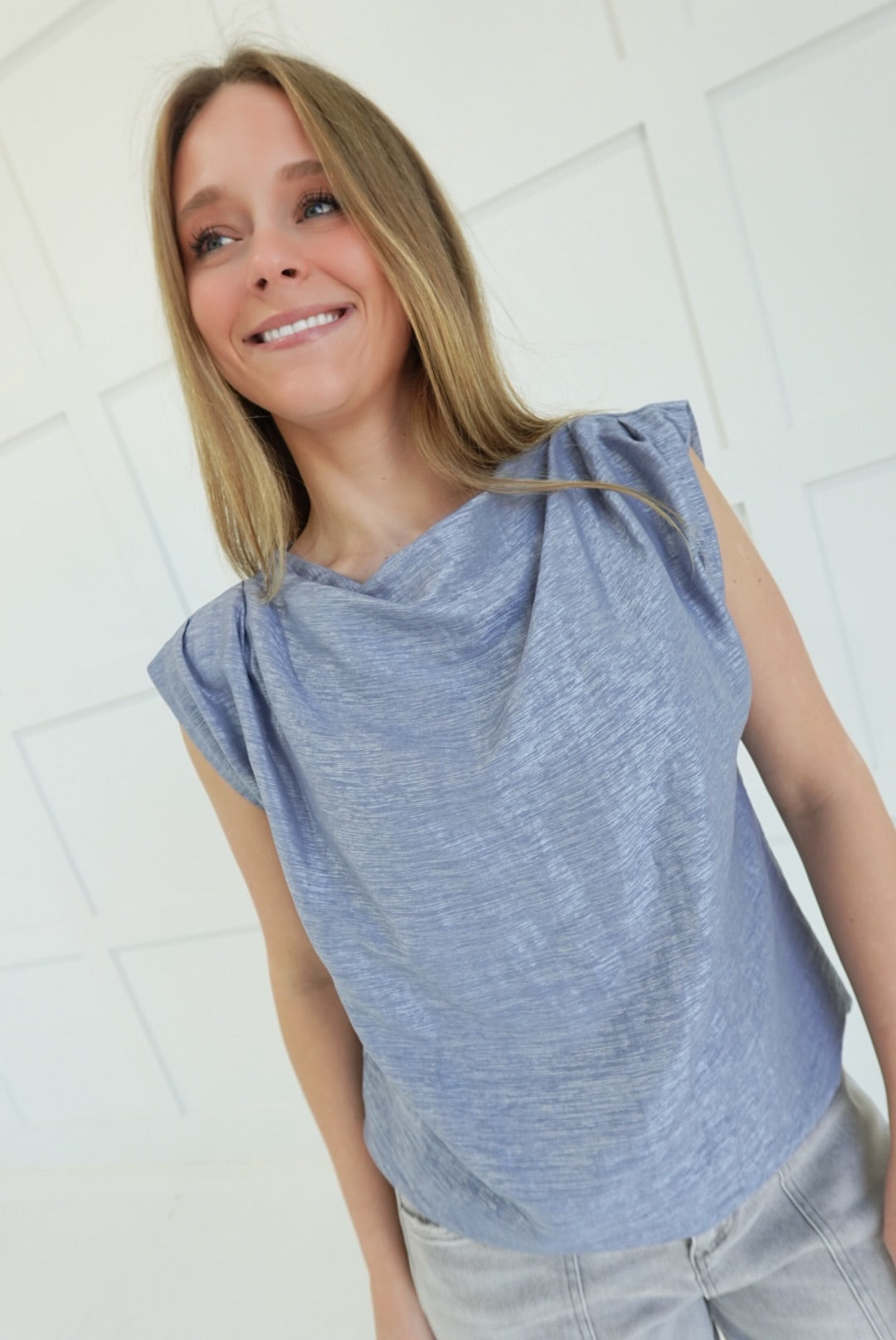 The Clean Slate Blouse strips away the ordinary with its fearless sleeveless silhouette and dramatic cowl neckline that commands attention. This piece refuses to play it safe—the flowing neckline creates an effortlessly bold statement while the bare shoulders deliver pure confidence. Perfect for those ready to reinvent their wardrobe with something that turns heads and sparks conversation. Wear it solo for maximum impact or layer it for versatile edge.