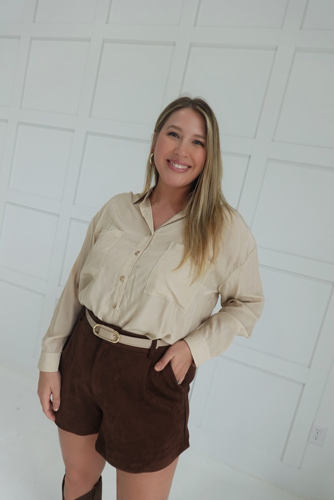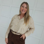 Embrace effortless style with the Clocked In Button Down Shirt. This oversized, long-sleeve shirt offers a relaxed fit for comfortable all-day wear, perfect for layering or making a bold statement on its own. Crafted to balance casual ease with a polished look, it’s ideal for those seeking both comfort and confidence in their wardrobe.