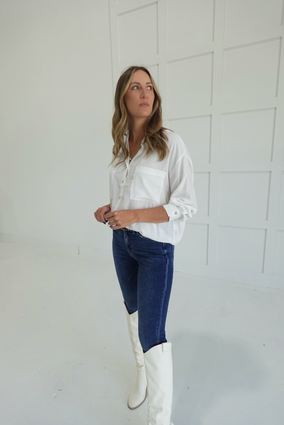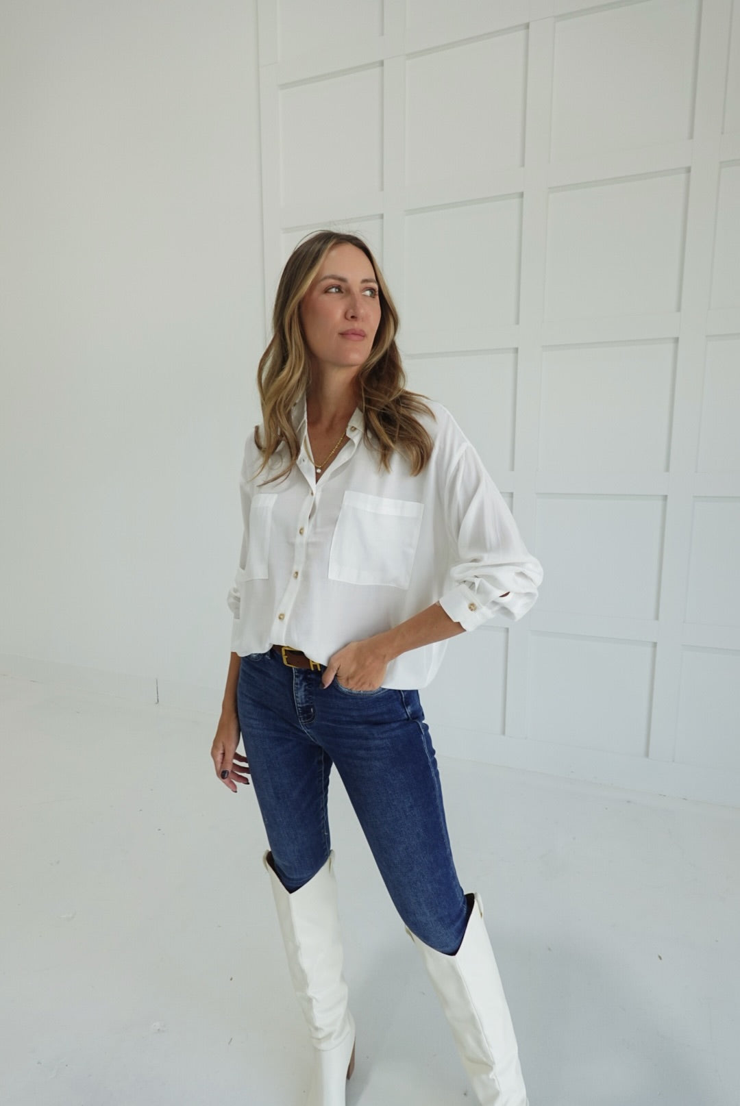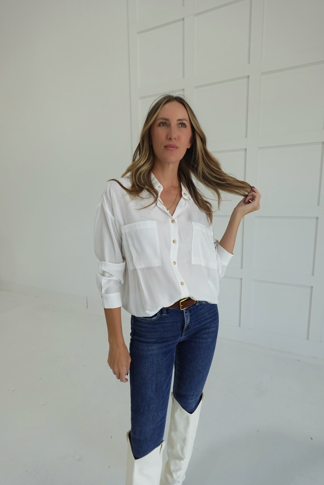 Embrace effortless style with the Clocked In Button Down Shirt. This oversized, long-sleeve shirt offers a relaxed fit for comfortable all-day wear, perfect for layering or making a bold statement on its own. Crafted to balance casual ease with a polished look, it’s ideal for those seeking both comfort and confidence in their wardrobe.