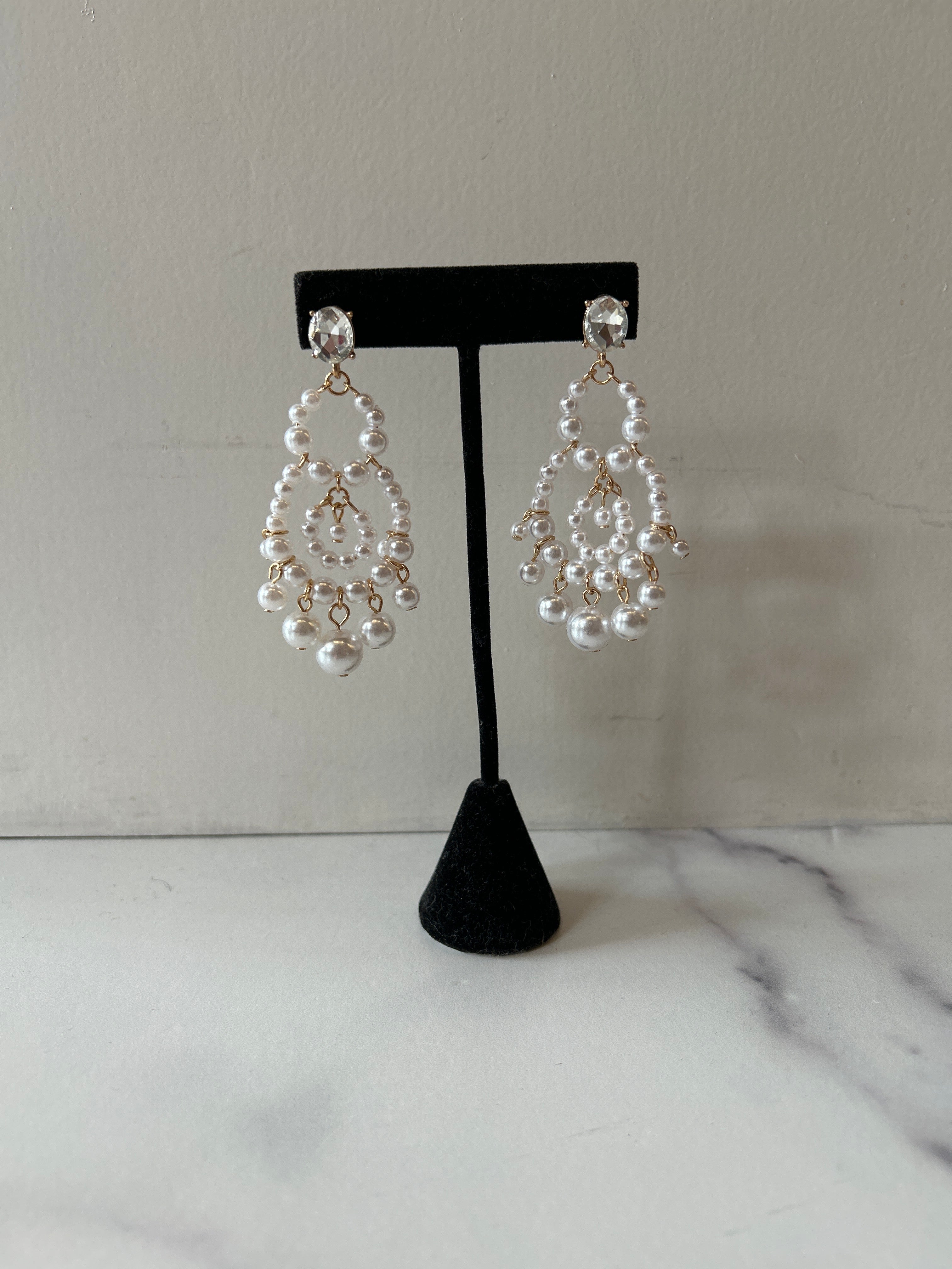 Cluster Pearl Huggie Drop Hoops