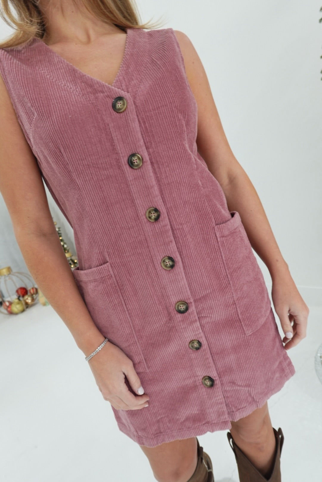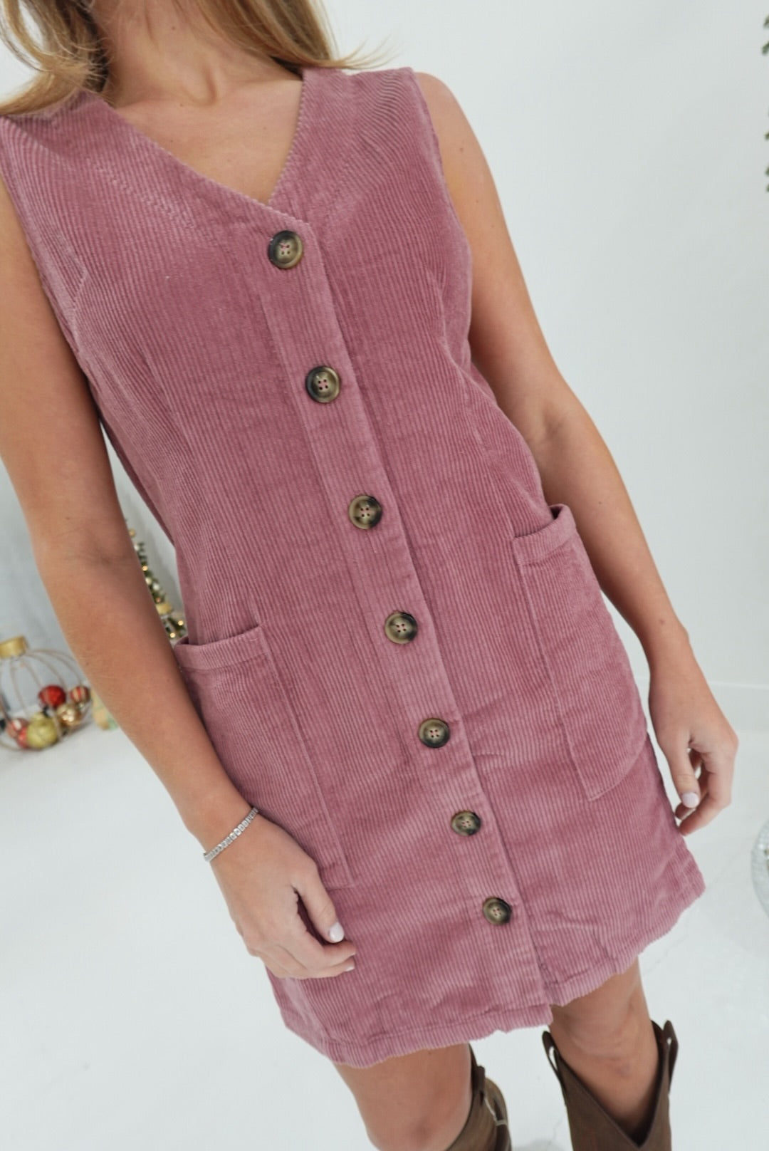 This corduroy button-front mini dress combines classic texture with a flattering silhouette. Its soft, durable fabric offers comfort and warmth, while the button detailing allows easy styling versatility. Perfect for casual outings or layering on cooler days, this dress brings a cozy yet chic touch to your wardrobe essentials.