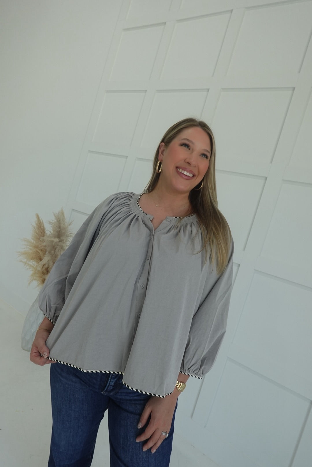 The Common Ground Blouse offers a timeless button-down design that brings effortless style and comfort to your wardrobe. Its clean lines and versatile color make it perfect for layering or wearing on its own, providing a polished look for any occasion. Crafted for ease and adaptability, this blouse supports your everyday confidence and style.