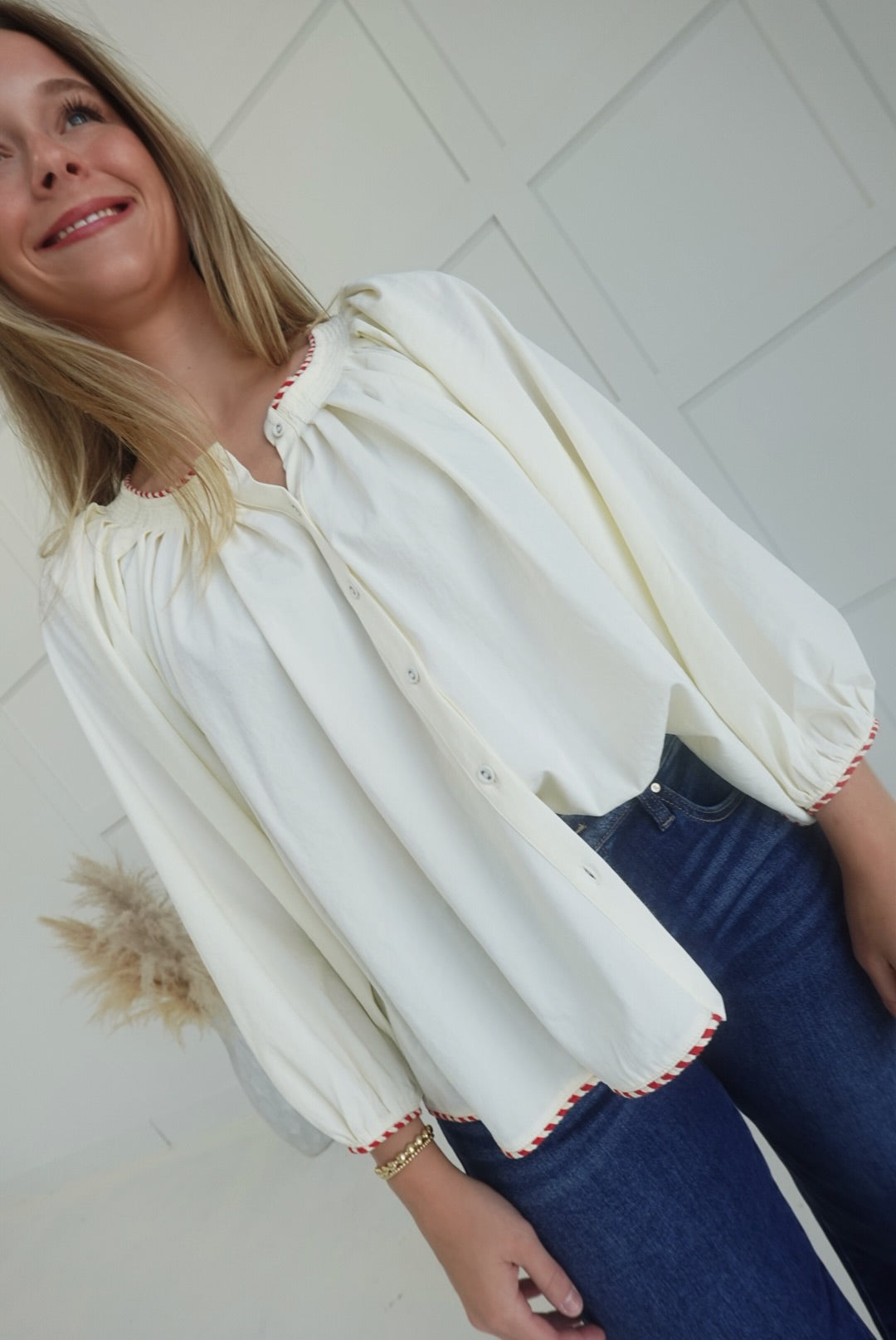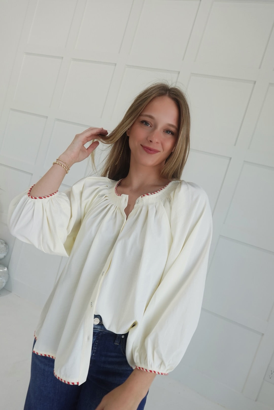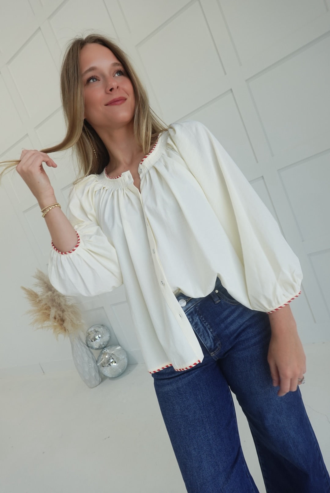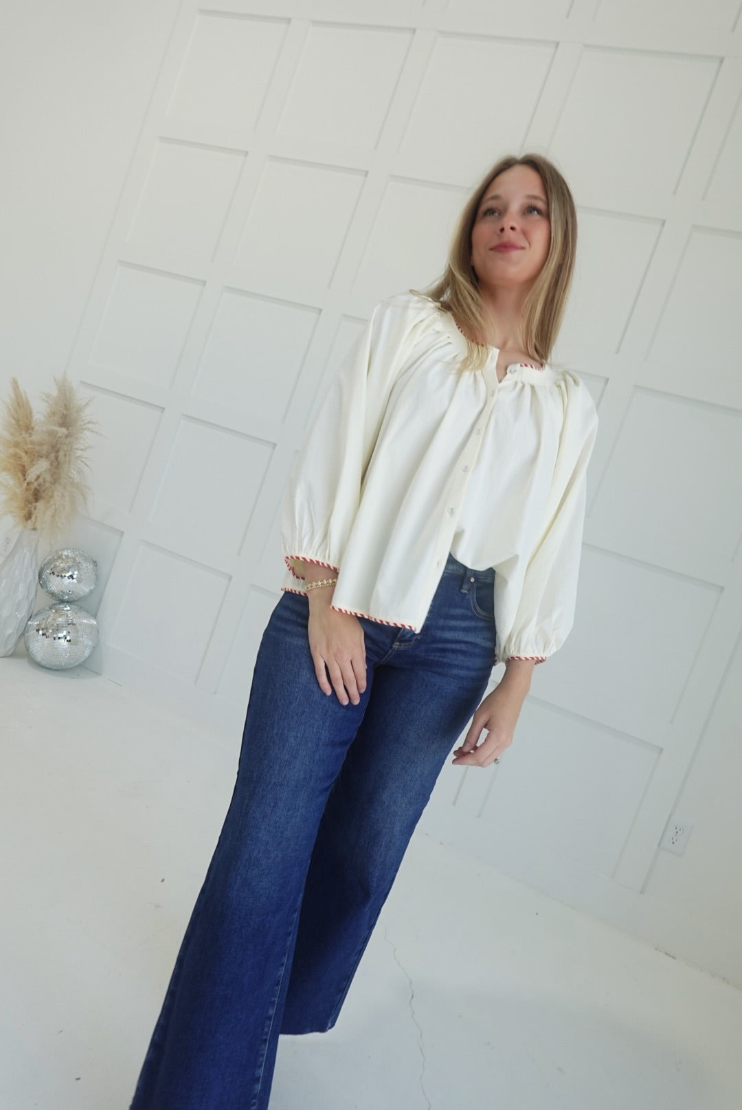 The Common Ground Blouse in Off White offers a timeless button-down design that brings effortless style and comfort to your wardrobe. Its clean lines and versatile color make it perfect for layering or wearing on its own, providing a polished look for any occasion. Crafted for ease and adaptability, this blouse supports your everyday confidence and style.