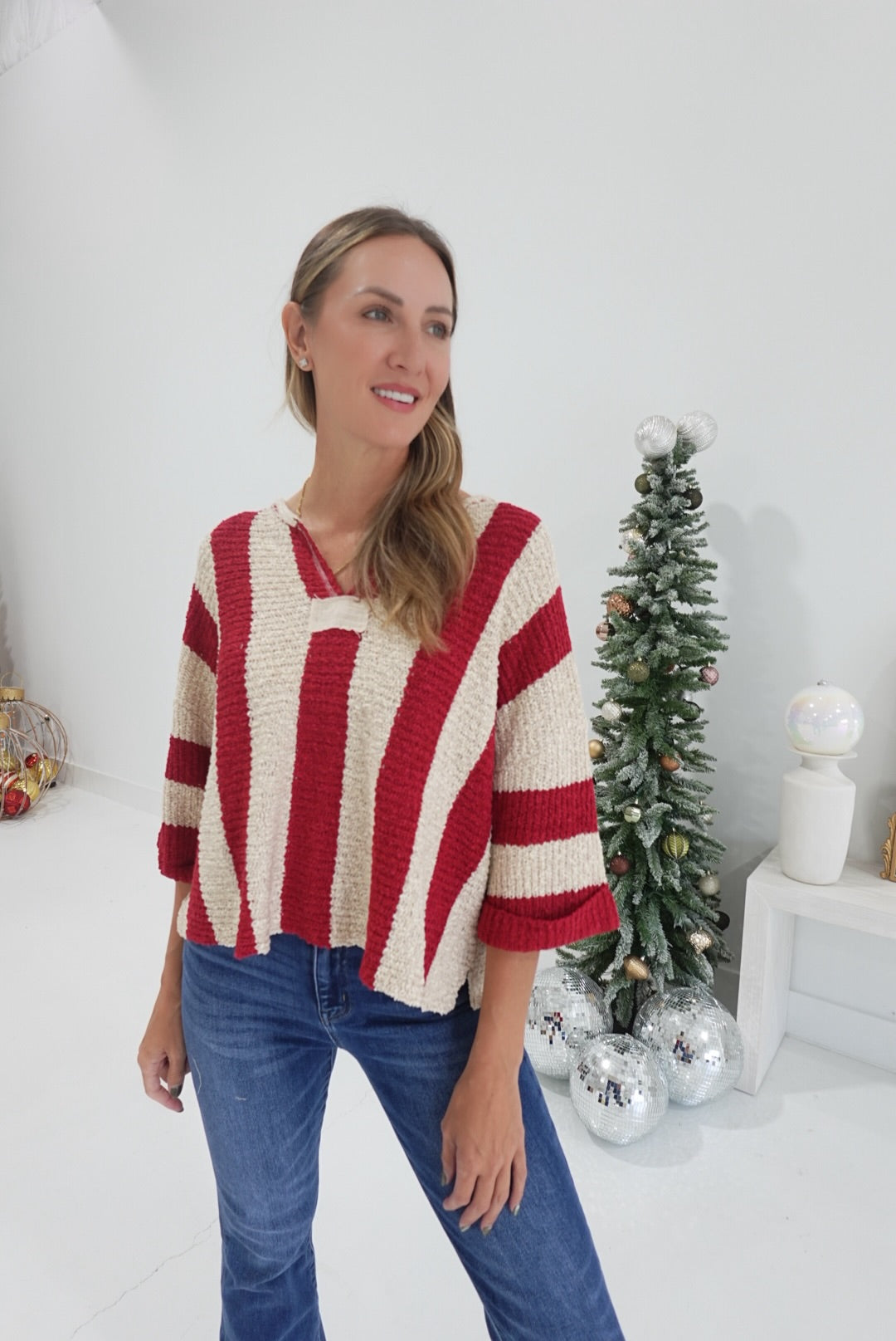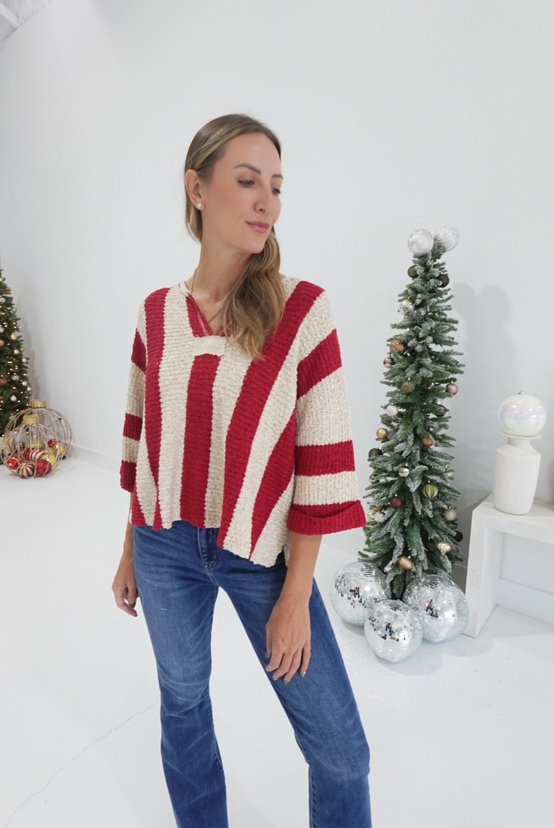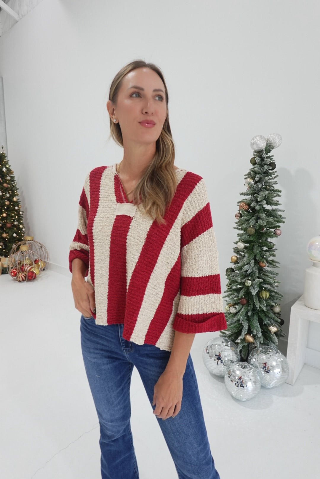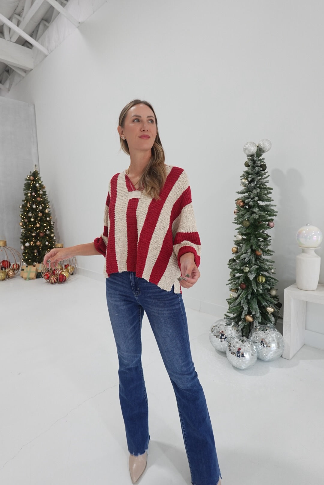 The Compliments Me Sweater features a stylish vertical stripe pattern combined with a comfortable boxy fit. Designed to offer both ease and a flattering shape, this sweater provides a cozy feel perfect for layering or wearing on its own. Its relaxed silhouette ensures freedom of movement while maintaining a polished look, making it a versatile addition to your wardrobe.