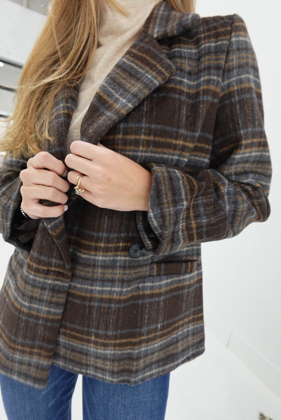 The Cornertown Long-Line Coat features a classic plaid pattern and a stylish notch collar, offering timeless appeal and effortless layering. Its button-front design ensures a secure fit while maintaining a sleek silhouette. Perfect for cooler days, this coat provides warmth without compromising on style, making it a reliable addition to your outerwear collection.