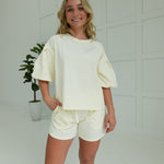 The Cotswold Set features a comfortable round neck bubble sleeve top paired with matching elastic tie shorts. This coordinated outfit offers ease of movement and a flattering fit, making it perfect for relaxed days or casual outings. Designed to provide both style and comfort, it’s an ideal choice for those seeking a versatile and supportive wardrobe staple.