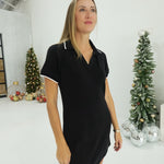 The Courtside Mini Dress offers a soft brushed modal fabric for a gentle, breathable feel all day. Its split neck and classic collar add subtle sophistication, while the mini length keeps the look fresh and versatile. Perfect for casual outings or layering, this dress combines comfort with effortless style.