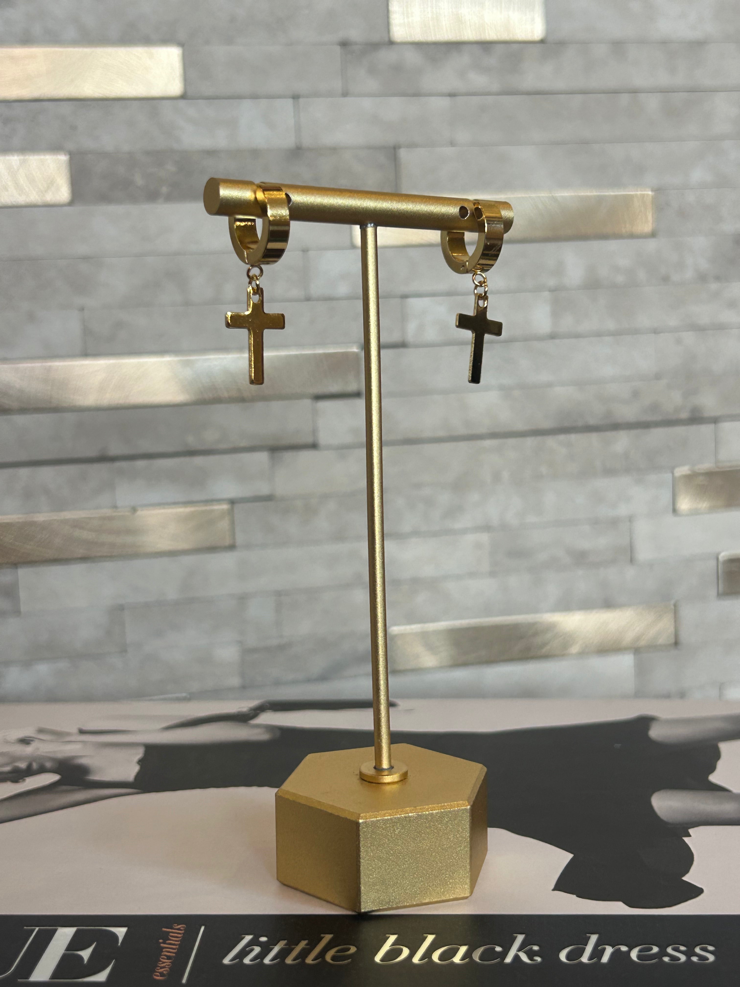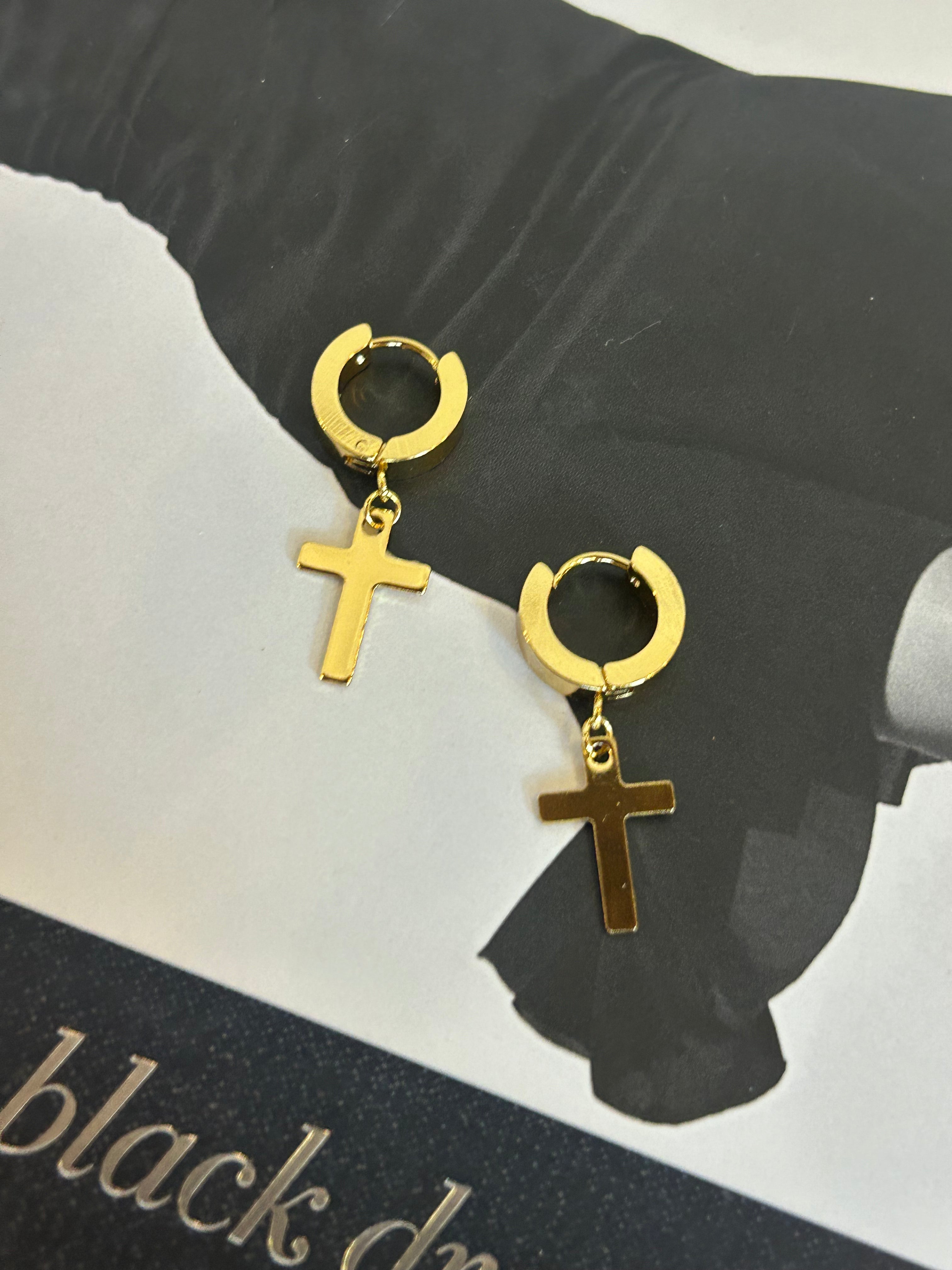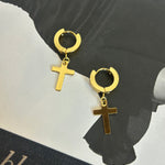 Fearless faith meets fearless style. These 18k stainless steel cross earrings command attention with their bold design and tarnish-free durability. Perfect for those who wear their beliefs unapologetically, these huggie hoops deliver edgy elegance that won't fade or corrode. Make a statement that lasts—spiritual conviction wrapped in uncompromising metal.