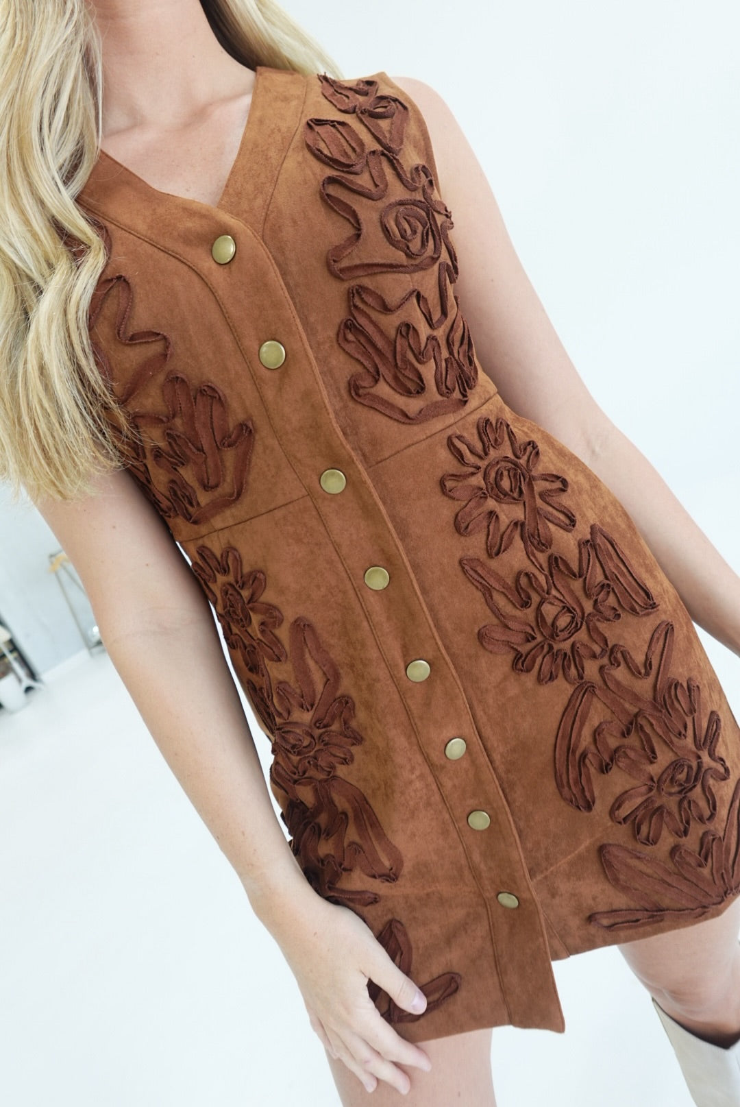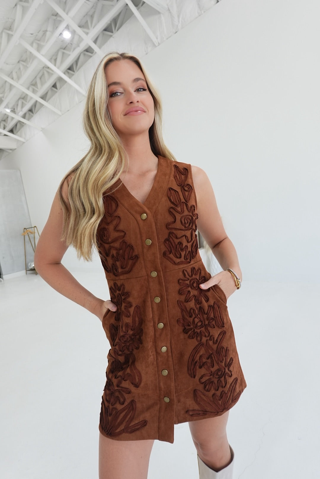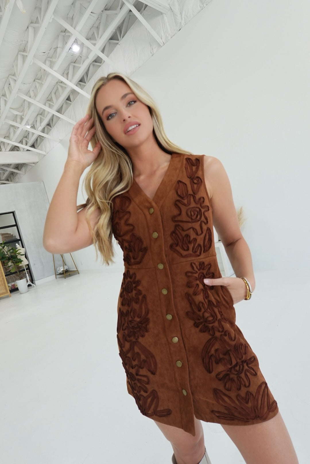 The Cutler Suede Dress offers a timeless sleeveless design with a button-up front and elegant cord detailing. Crafted from soft suede, it combines comfort with refined style, making it perfect for layering or wearing on its own. This versatile dress supports your wardrobe with effortless sophistication for any occasion.