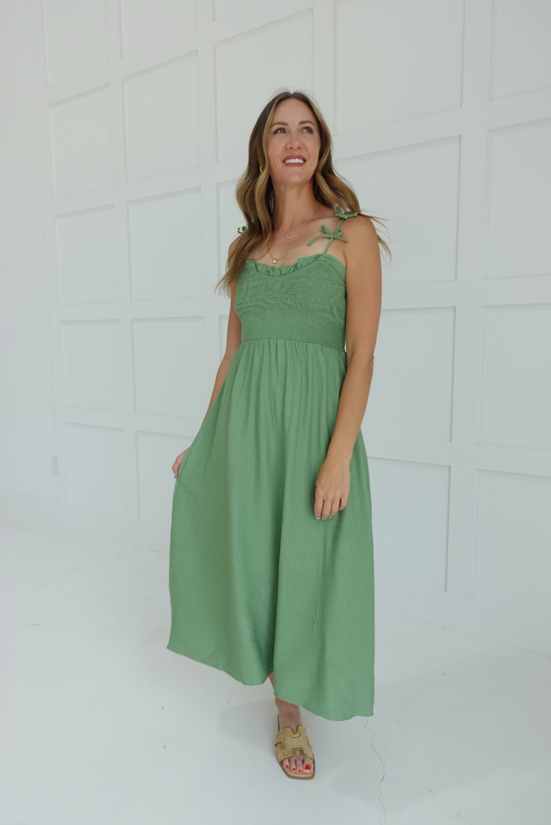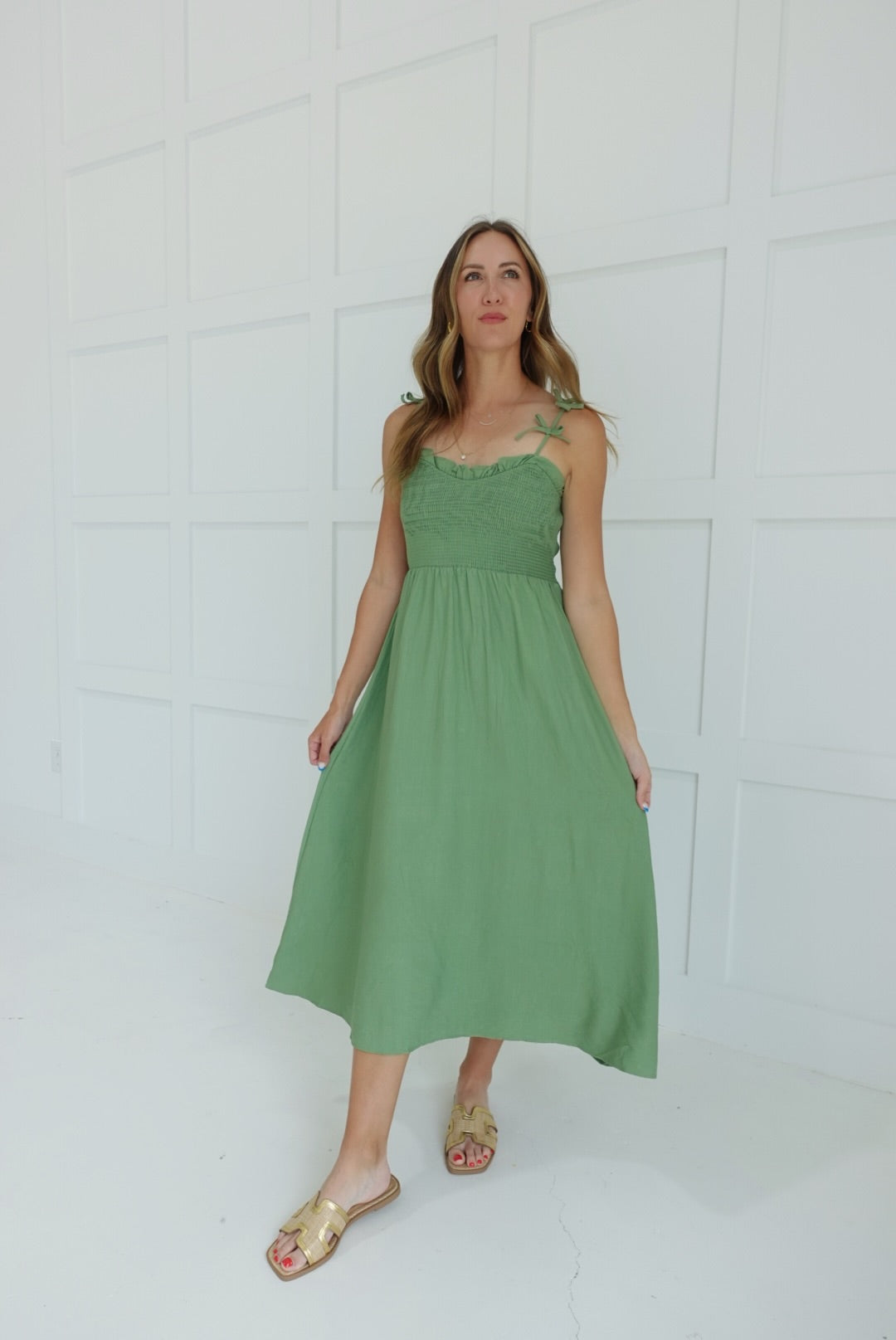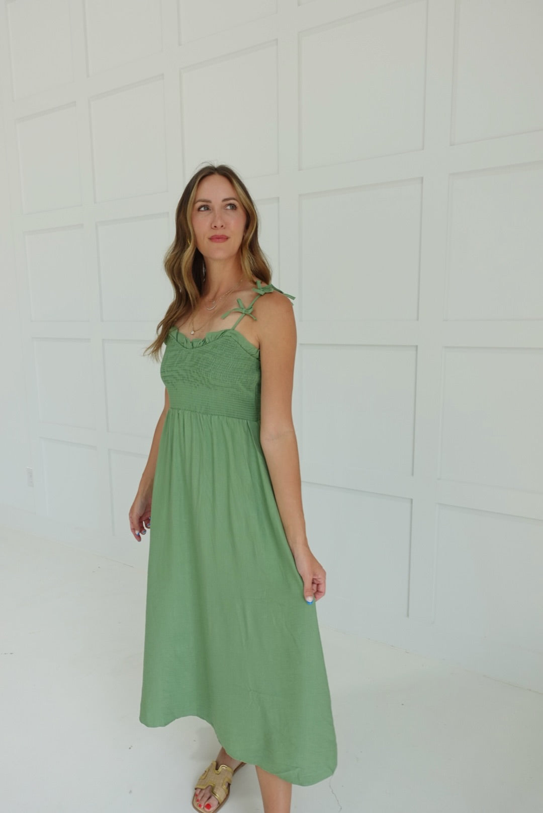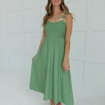 - Smocked Sweetheart Neckline Midi ft. Bow Detail On Straps