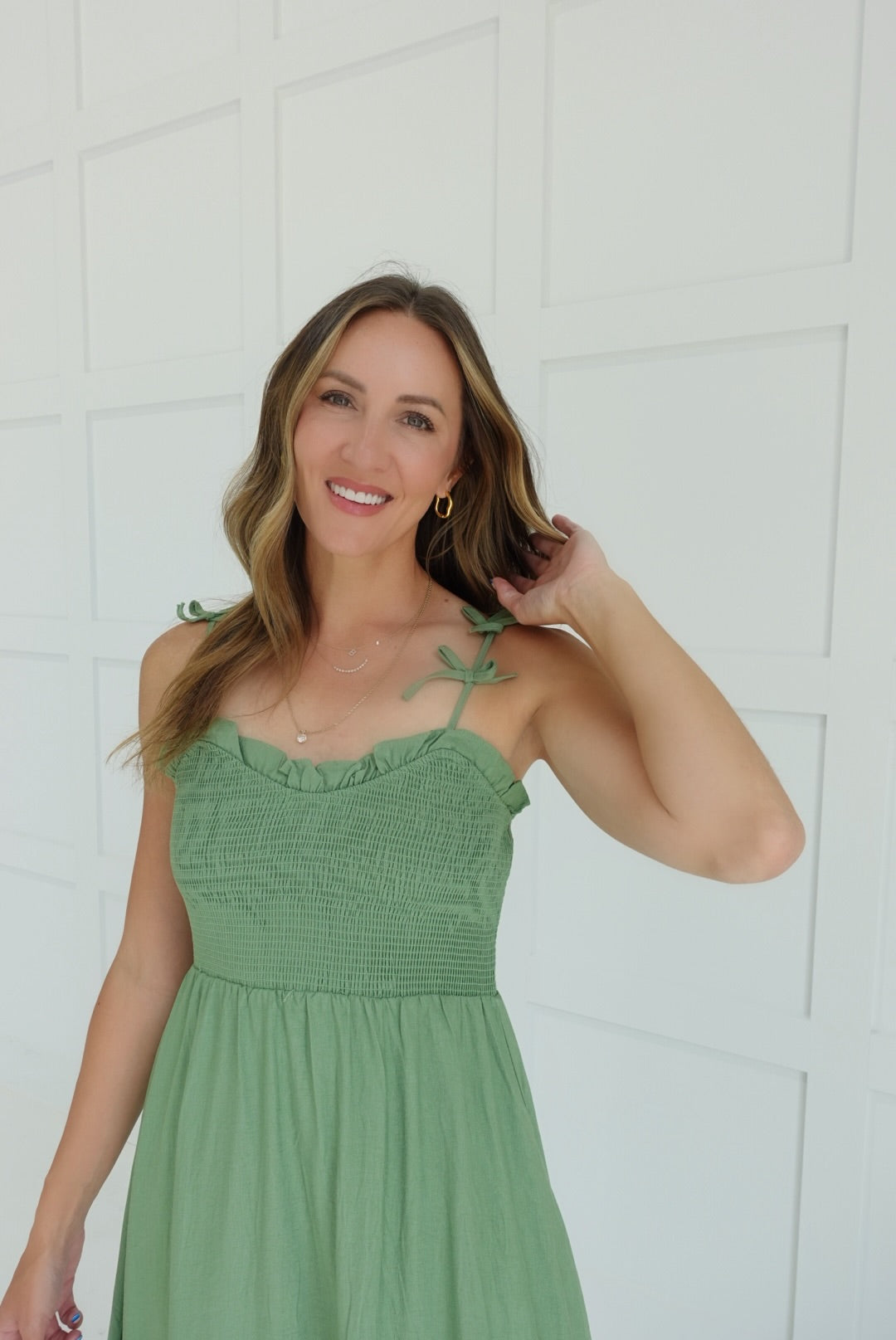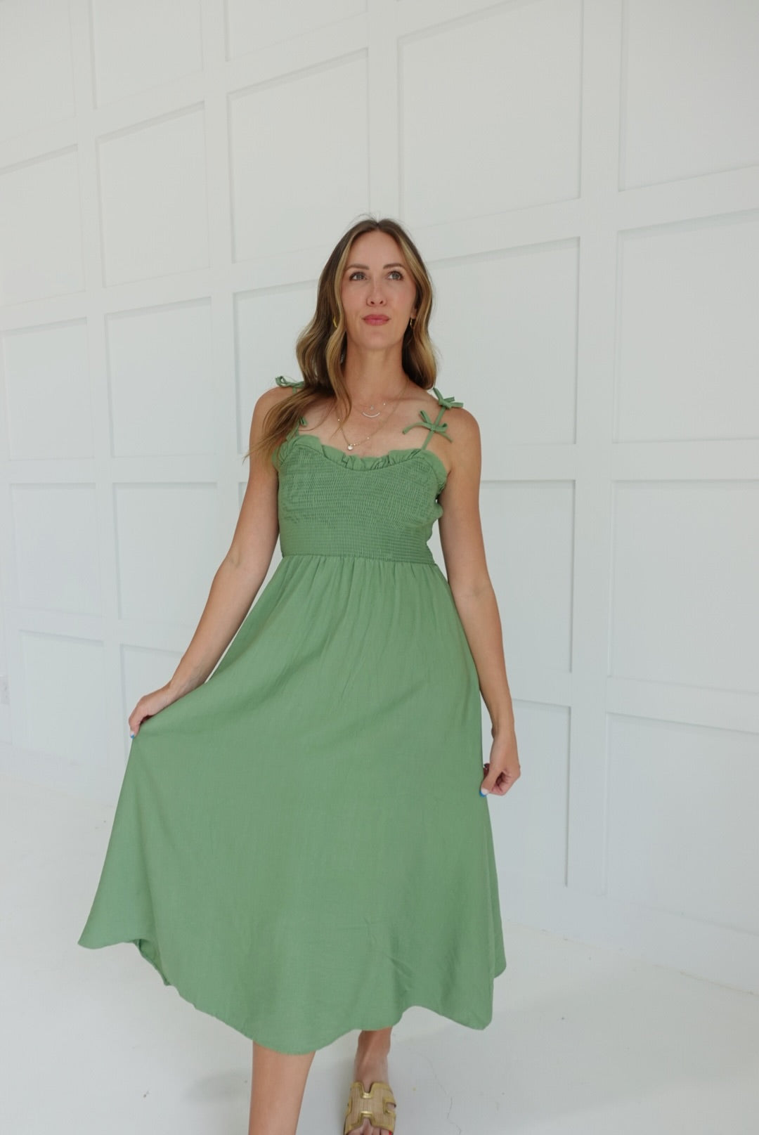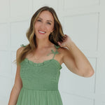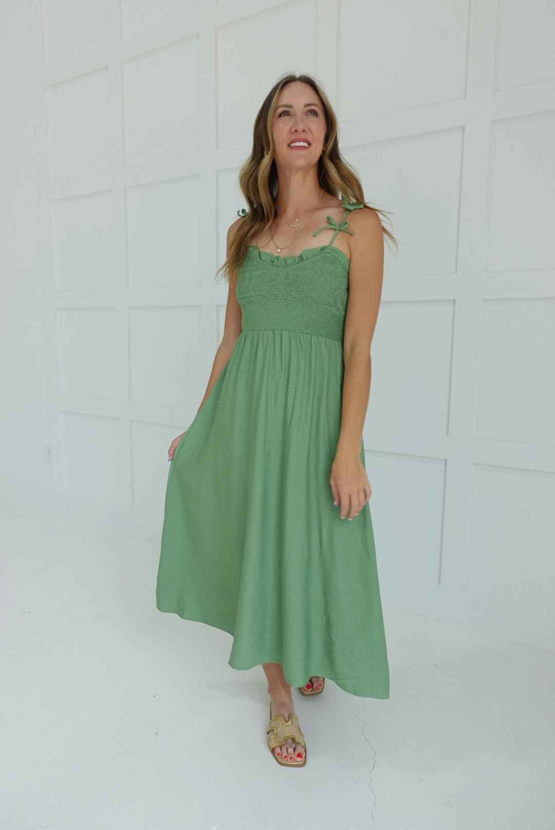 - Smocked Sweetheart Neckline Midi ft. Bow Detail On Straps
