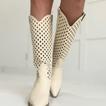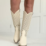 The Danica Western Boot features elegant laser-cut designs that add a refined, artistic touch to its tall silhouette. Crafted to combine classic western style with detailed craftsmanship, this boot offers both durability and standout appeal. Perfect for those seeking a blend of tradition and unique flair, the Danica supports your every step with comfort and confidence.