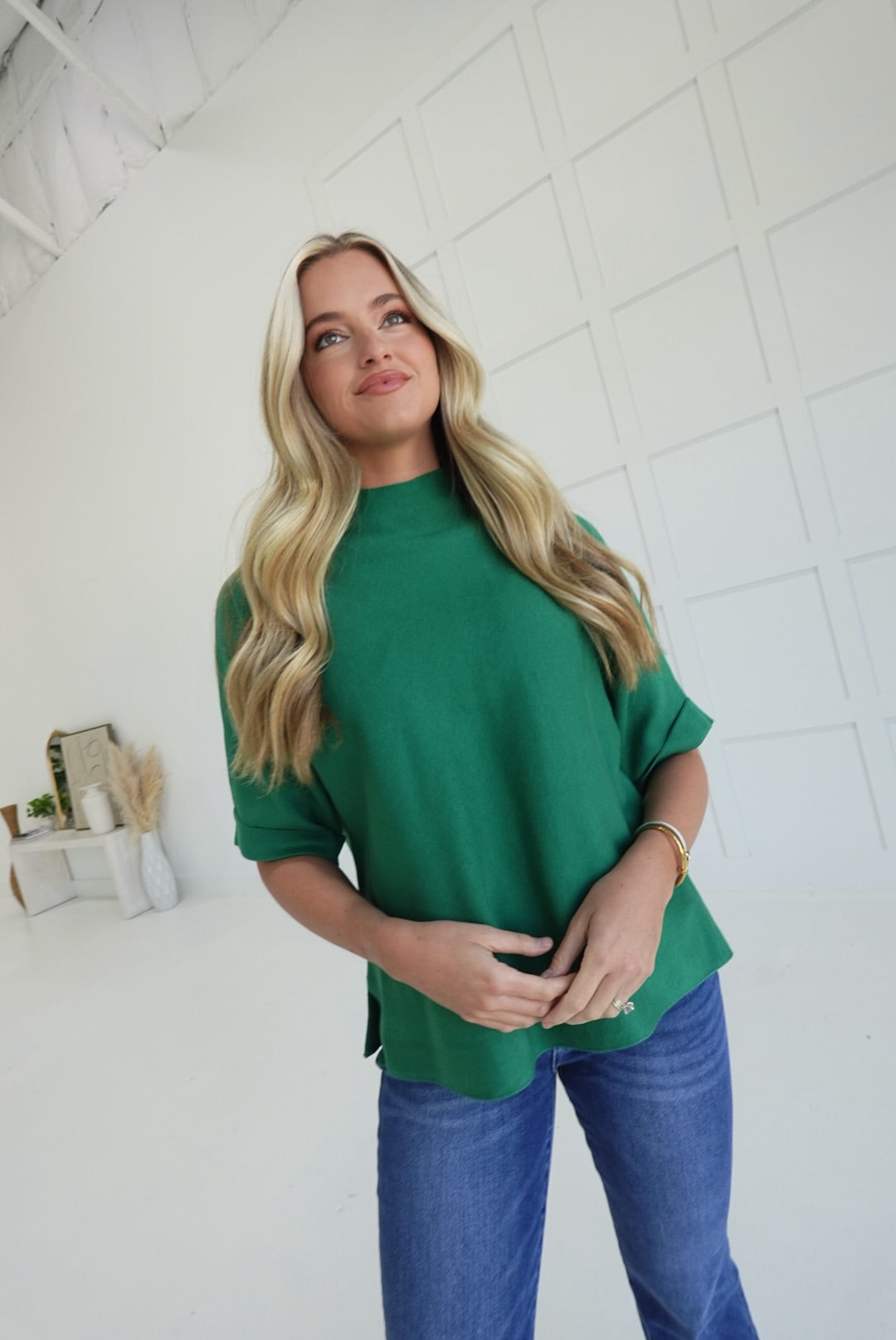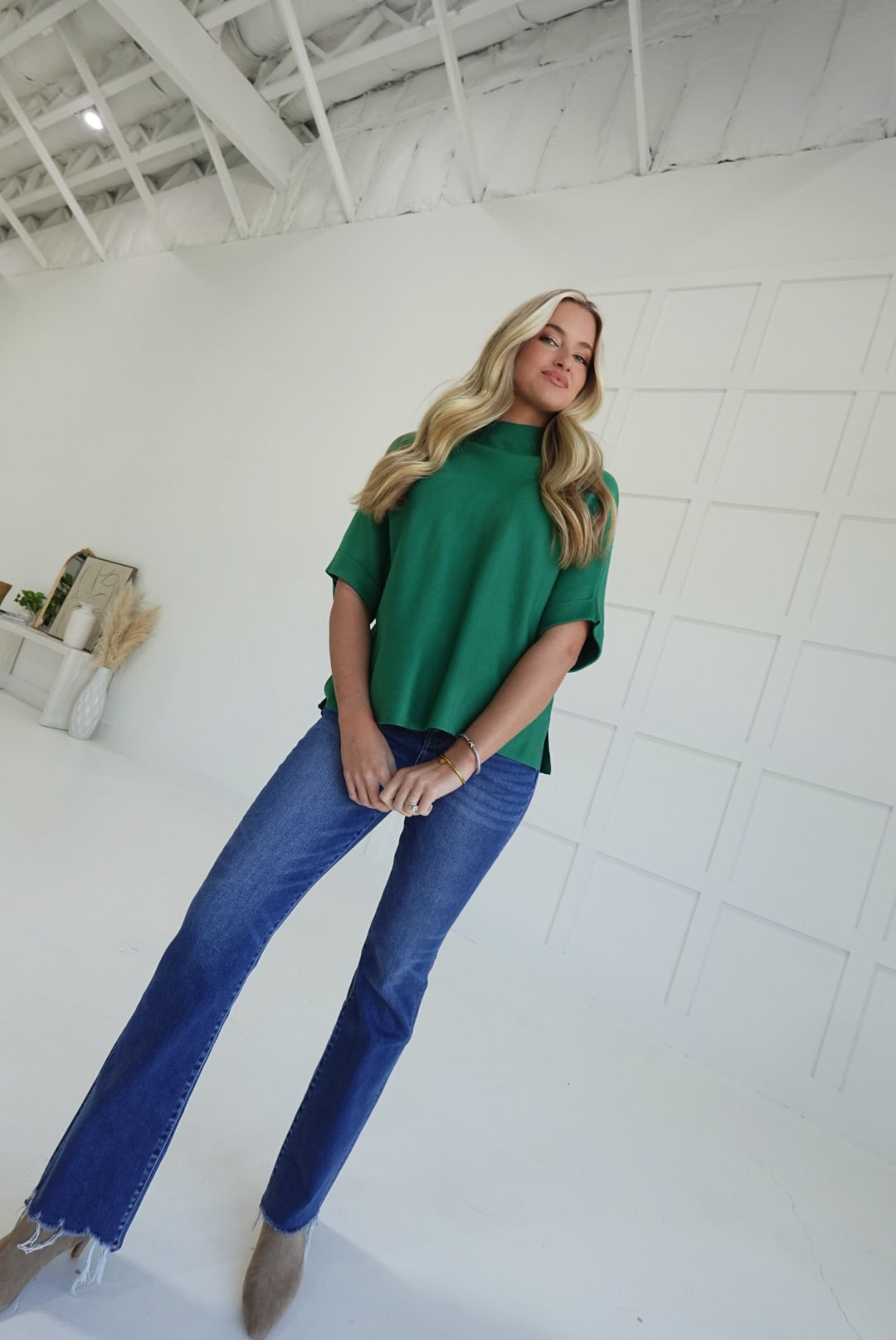 Stay comfortable and stylish with the Danner Sweater Top in Hunter Green. Featuring a cozy mock neck and flattering 3/4 sleeves, this sweater offers warmth without bulk, making it perfect for layering or wearing on its own. Its rich green hue adds a touch of nature-inspired elegance to your wardrobe, supporting your everyday look with both comfort and confidence.