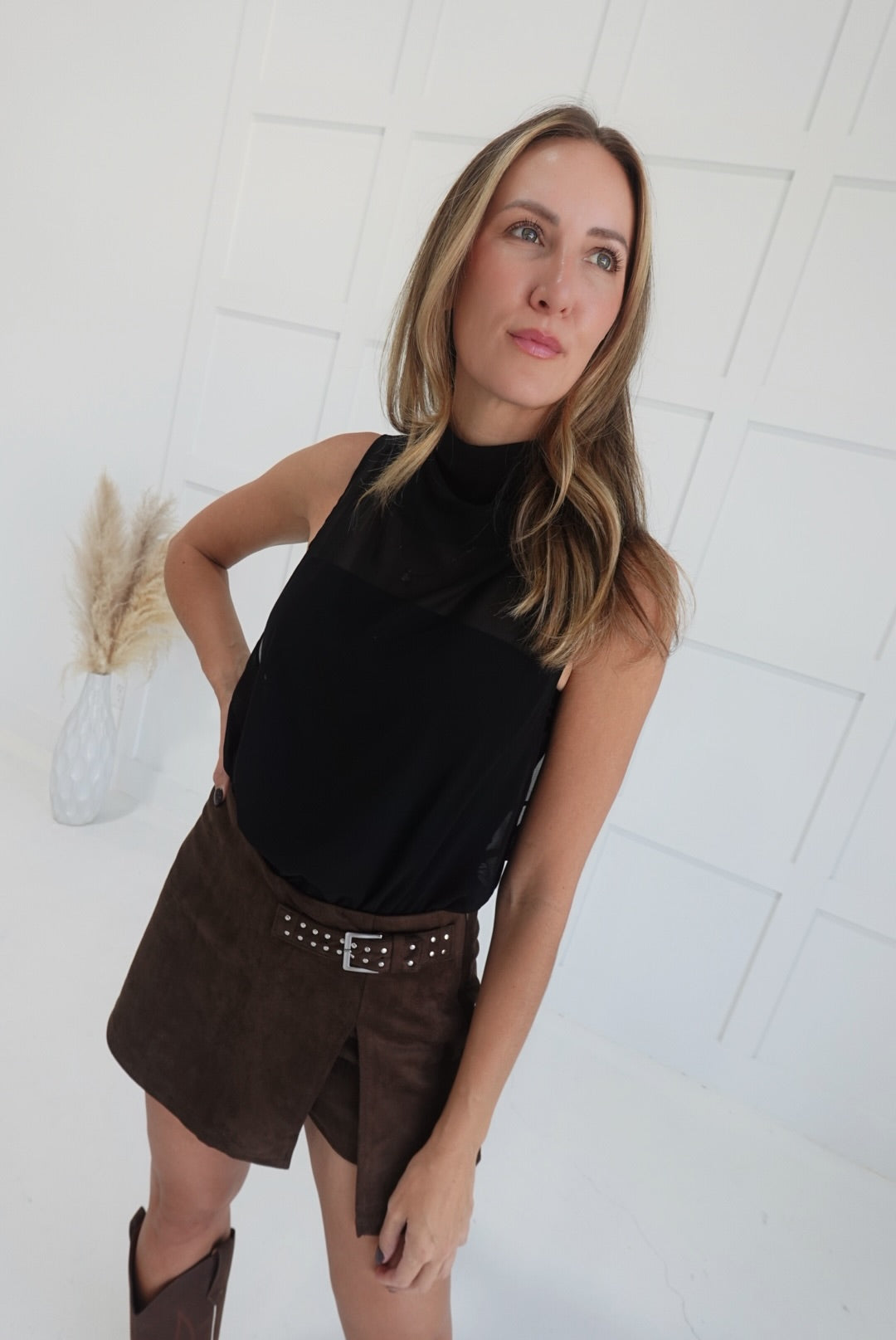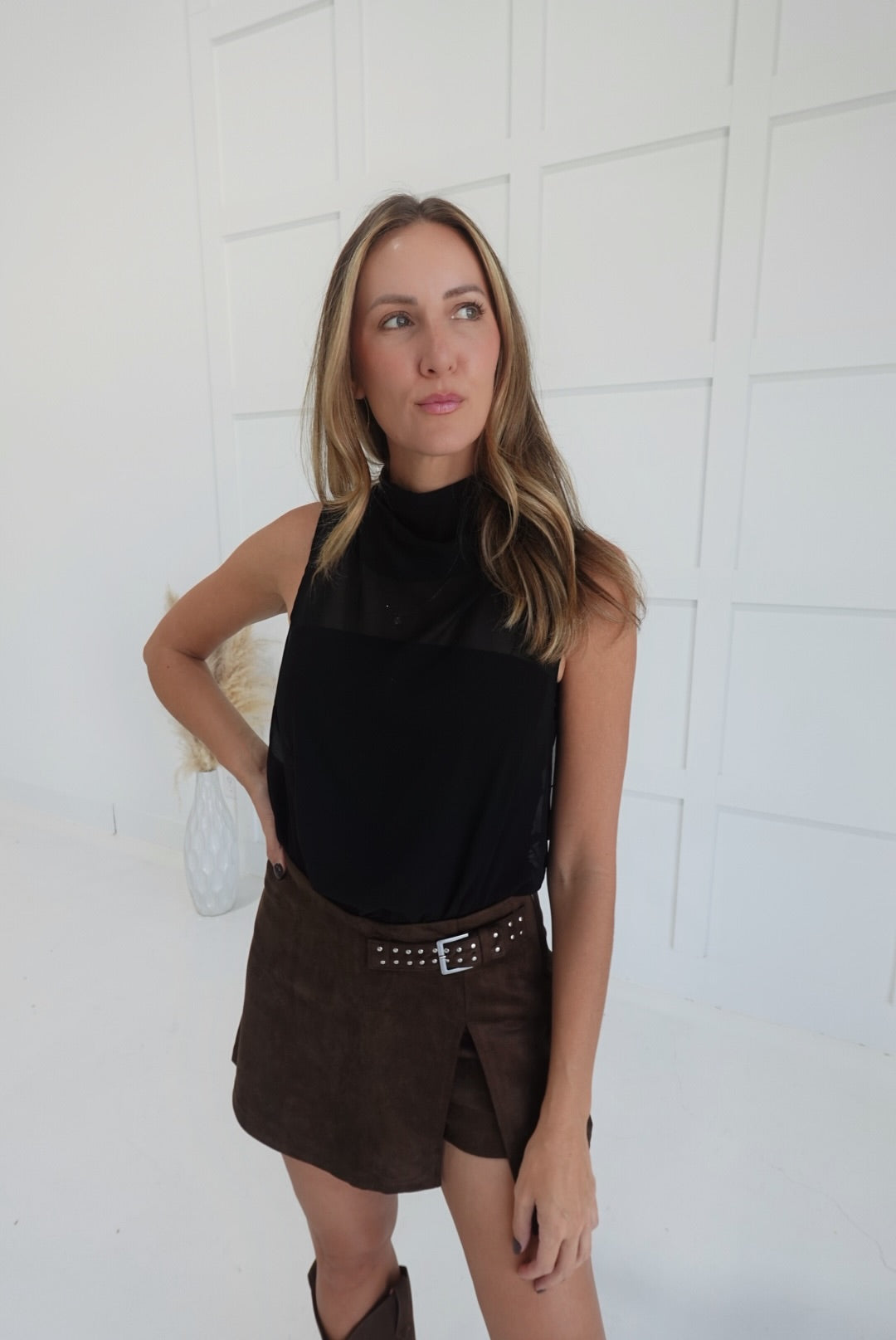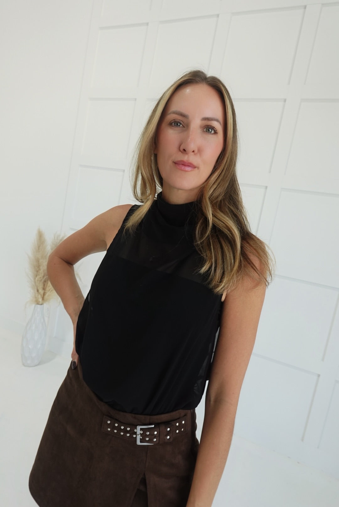 - Cowl Neckline Sleeveless Layered Bodysuit